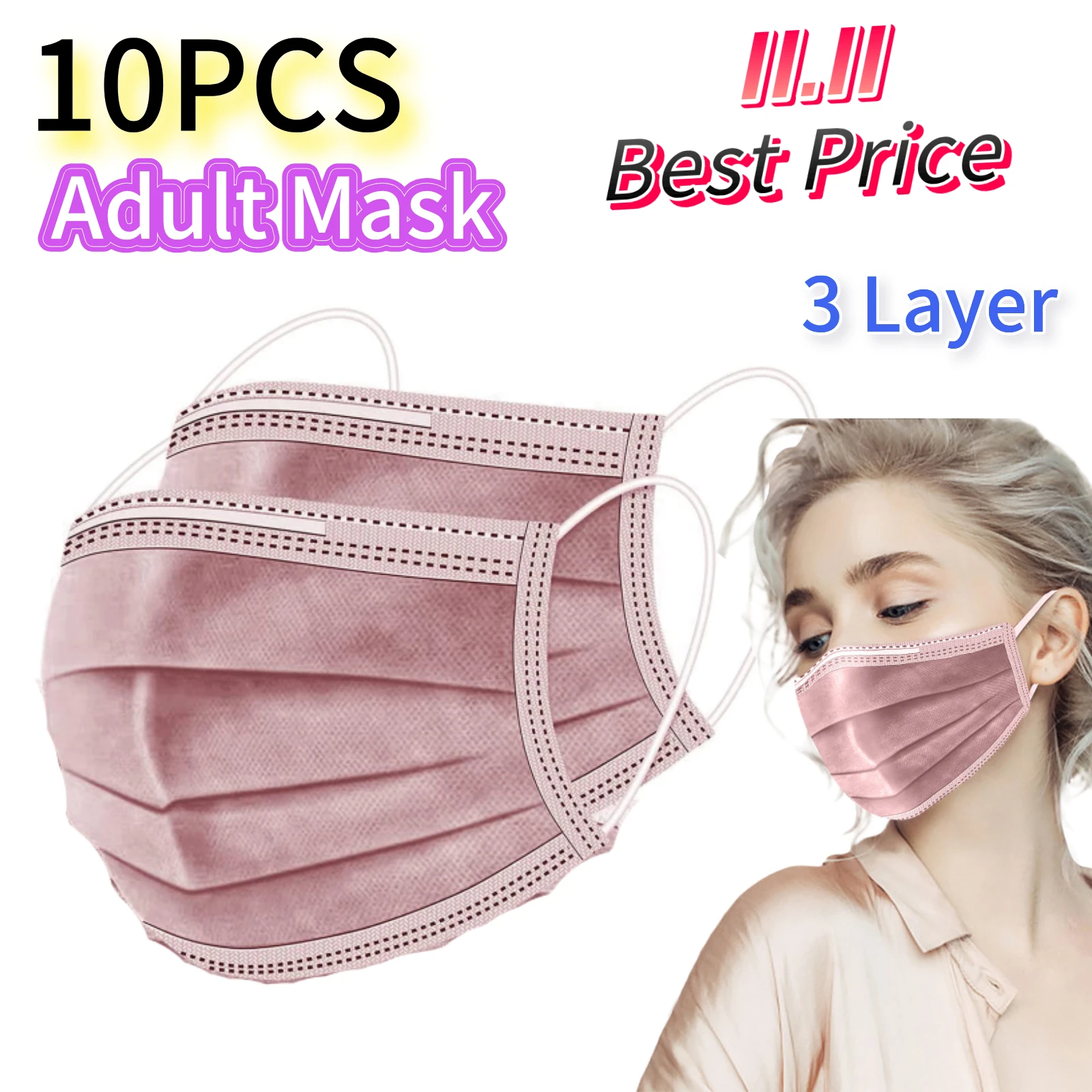 10 шт., одноразовые маски для лица для взрослых, розовый, фиолетовы...
