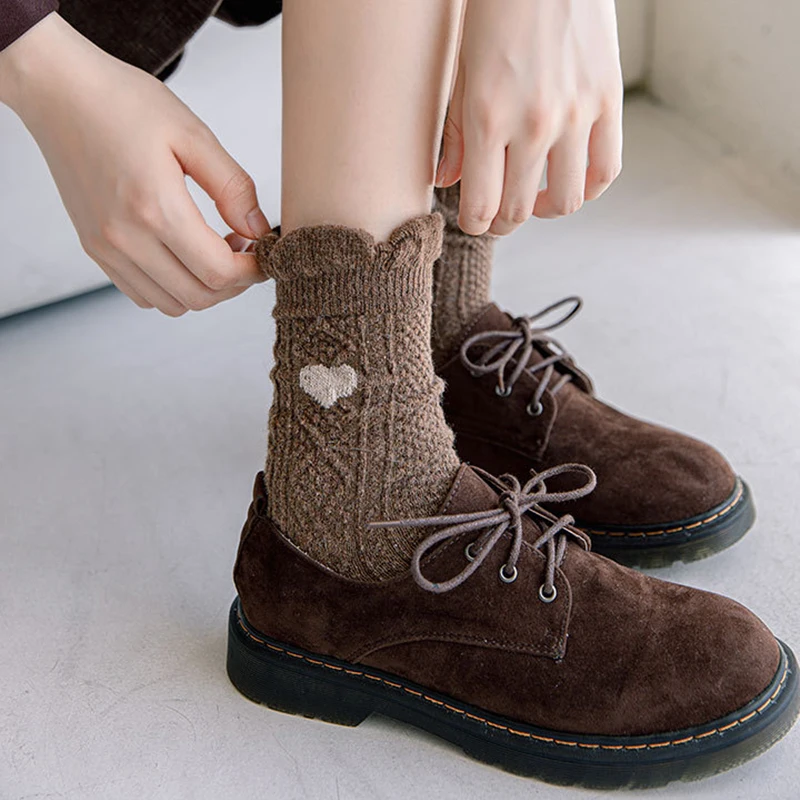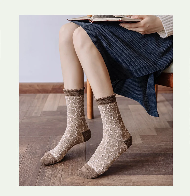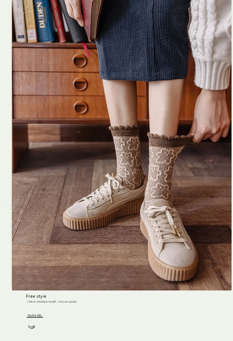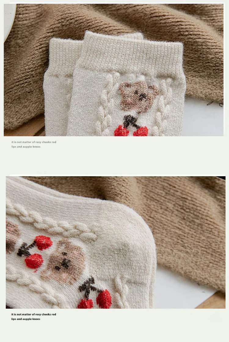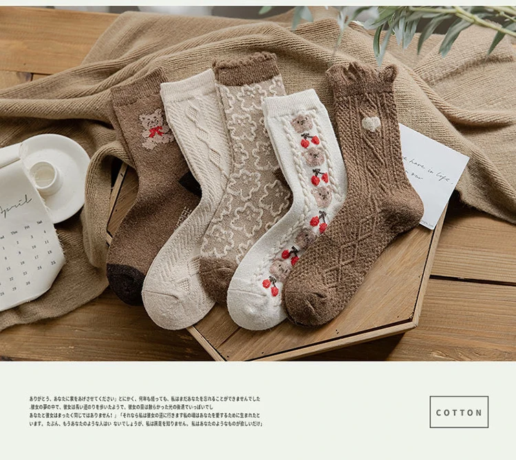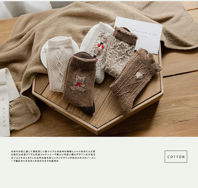 Зимние носки в стиле ретро, милые забавные шерстяные носки с мультяшным принтом животных в японском стиле, милые женские хлопковые дизайнерские носки