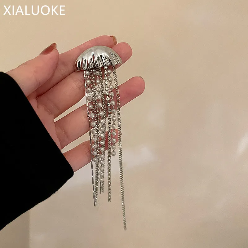 XIALUOKE 1 шт Ретро кисточкой Медузы Кристалл жемчужные серьги для женщин Гипербола личность серьги со стразами бижутерия