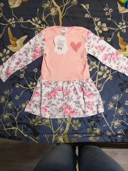 Платье нежное. Брала для дома. Размер взяла 2т, нам 1.5 годика, сейчас длинноваты рукавчики, а значит идет в размер. Все строчки ровные и качественно отделаны. Продавец очень общительный и внимательный. Заказала уже второй товар у него и буду заказывать еще