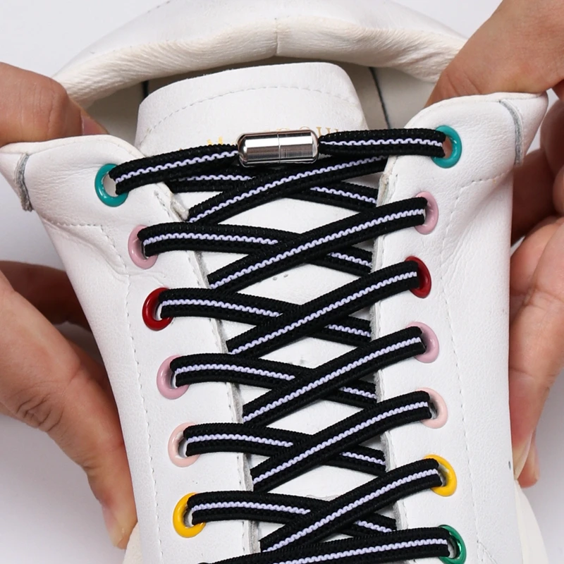 Черно-белые эластичные теннисные туфли с кружевами без галстука шнурки плоские шнурки без галстуков для детей и взрослых быстрая шнуровка для обуви резинки
