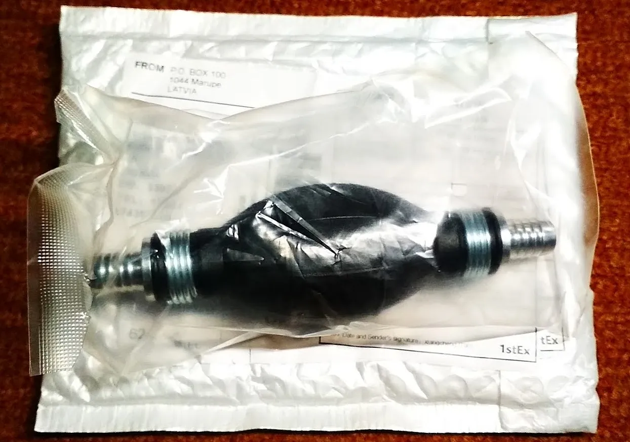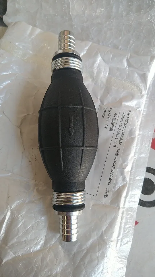 Посылка пришла до Владивостока шла 28 дней. Качество хорошее груша из резины, выходные фитинги из алюминия, но очень маленькая, внутреннее отверстие на 6мм, наружка 12мм. ДЛЯ ПЕРЕКАЧКИ ТОПЛИВА ДУМАЮ НЕ ПОДОЙДЁТ, 5 ЛИТРОВ БУДЕТ МИНУТ 20 ПЕРЕЛИВАТЬ. Задумка хорошая но грушу надо делать больше и внутренний диаметр тоже. С продавцом диалог не вел. Рекомендую!