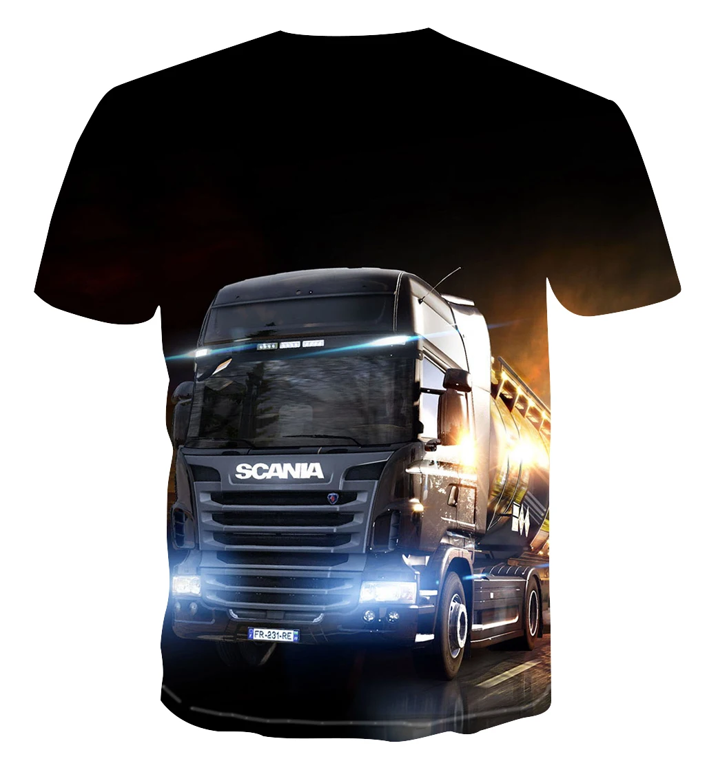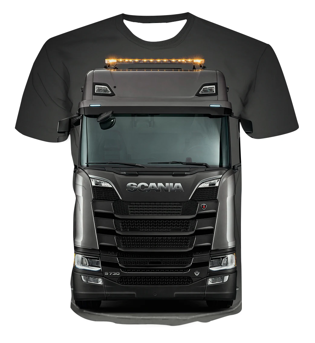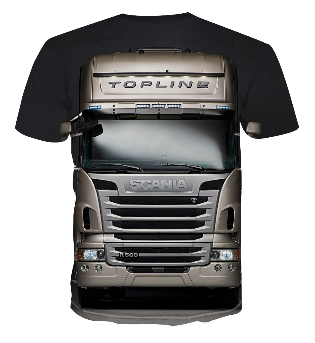 Футболка с круглым вырезом для мужчин и женщин, модная рубашка оверсайз в стиле Харадзюку, с объемным рисунком тяжелых грузовиков, лето