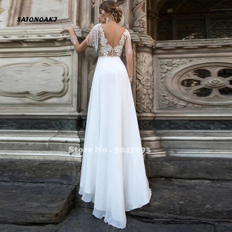 Богемные свадебные платья, кружевные шифоновые арабские Свадебные п...