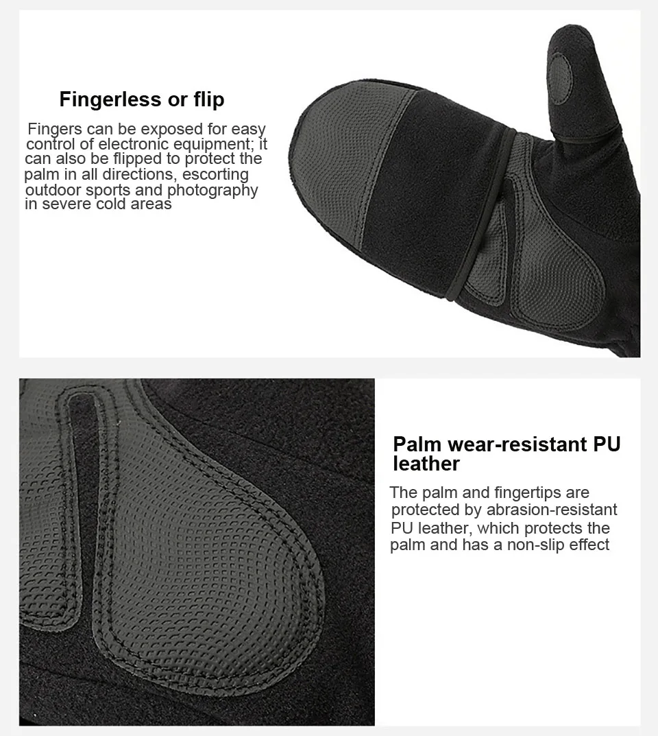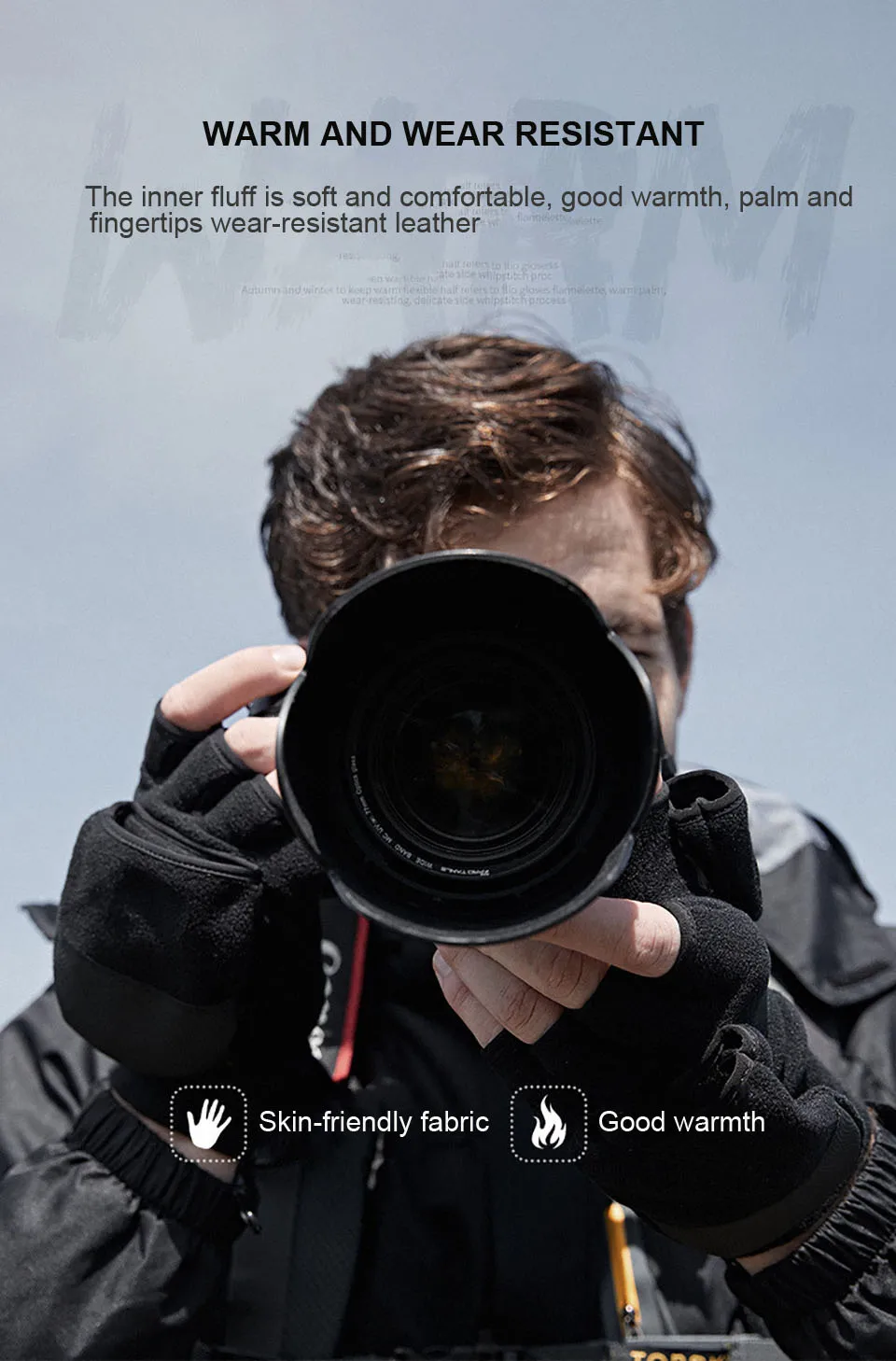 Зимний флип-чехол, черные рыболовные перчатки, Нескользящая дышащая камера, фотография