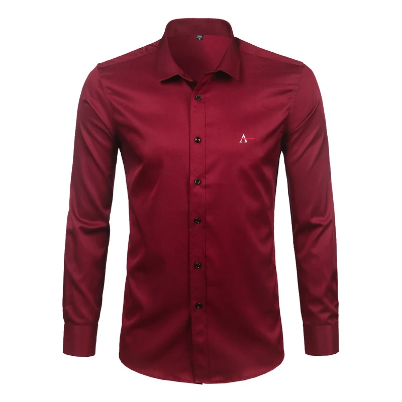 Брендовая мужская классическая рубашка из бамбукового волокна бордо...