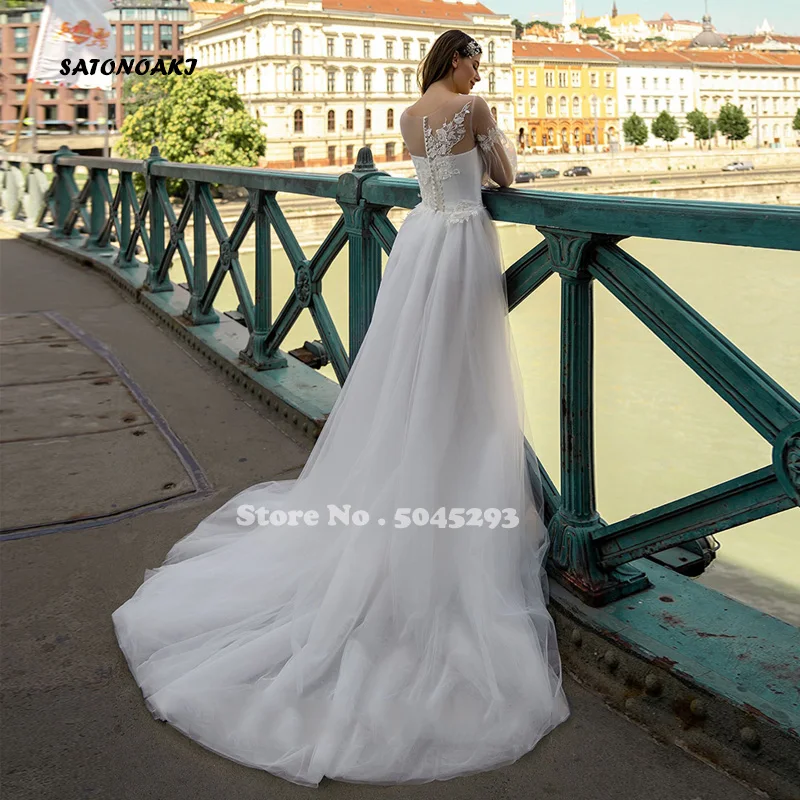 Свадебное платье-трапеция с круглым вырезом, кружевное платье с бле...