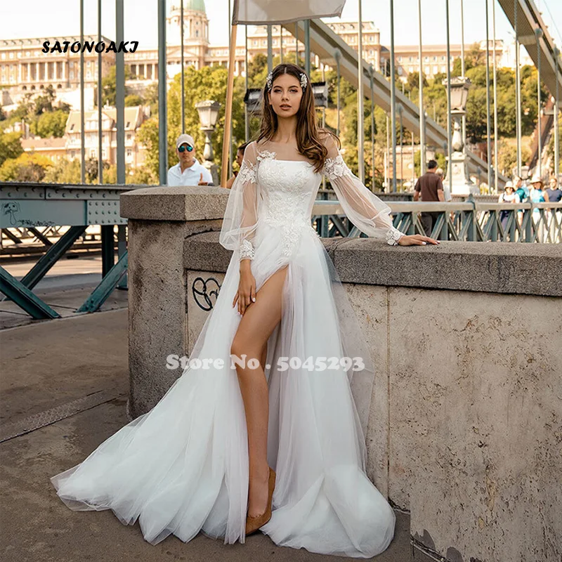 Свадебное платье в стиле бохо, свадебное платье с кружевной аппликацией и высоким разрезом для невесты, 2022