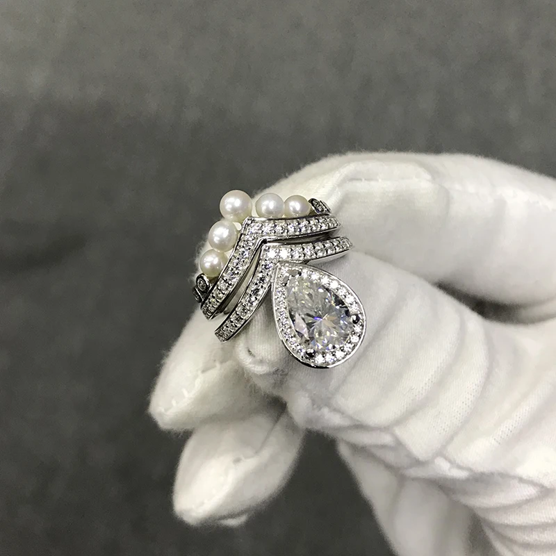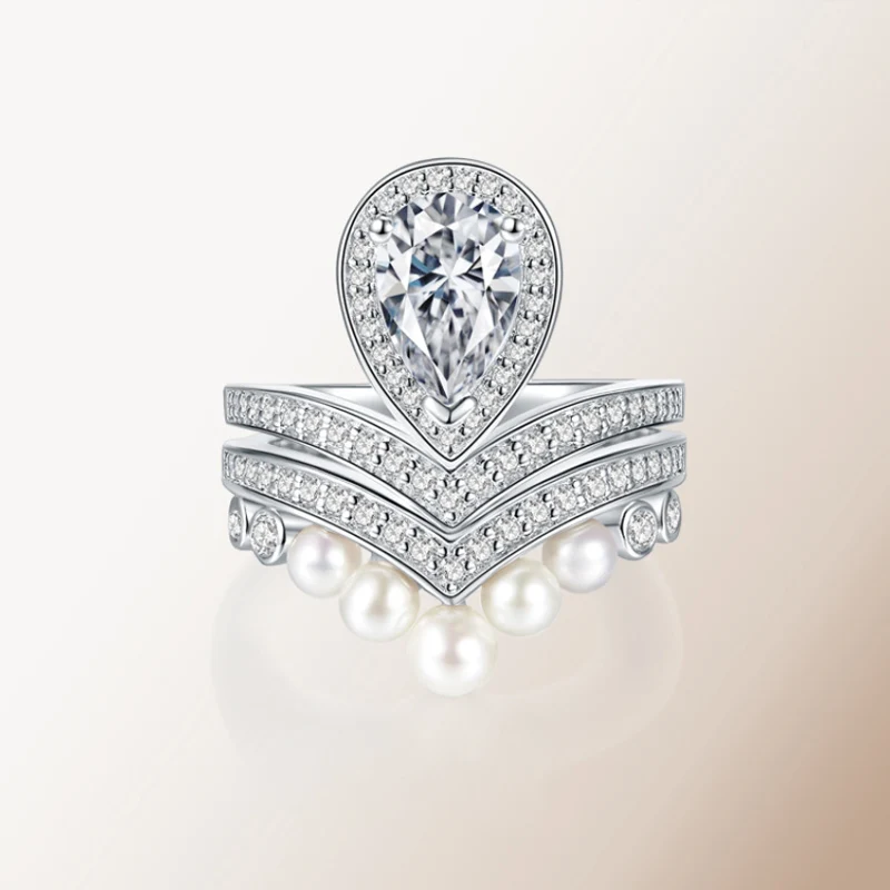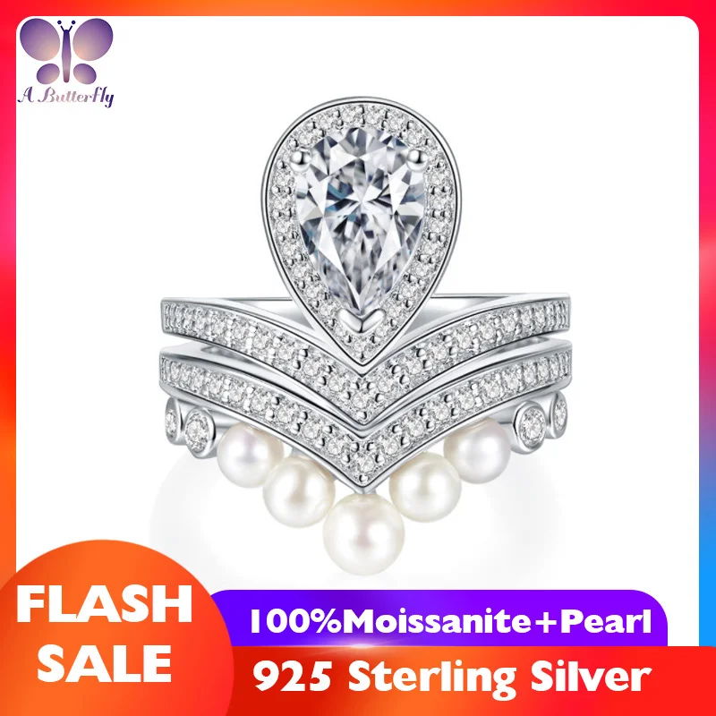 Женское кольцо из серебра 100% пробы, с муассанитом, 1,5 карата, в форме груши, очень блестящее обручальное кольцо, ювелирные изделия высокого качества