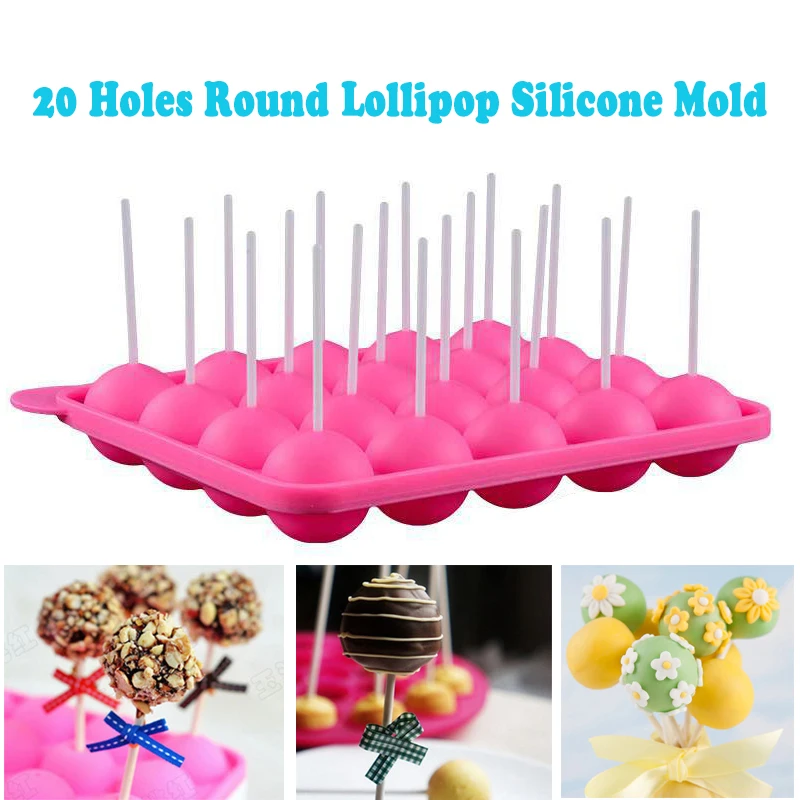 Силиконовая Круглая Форма для леденцов, 20 отверстий, антипригарная Сферическая форма для торта, шоколадные формы и палочки, ледяные кубики, кухонный инструмент для выпечки
