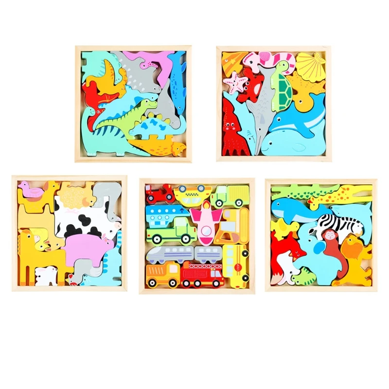 Головоломка Монтессори деревянный мультфильм головоломка коробка утолщаются познание головоломки раннего обучения игрушка-Танграм детей 2 + подарок на день рождения D5QA
