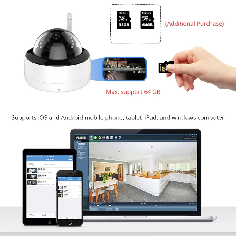 Видеокамера Вай-фай Xmeye ip camera wi-fi 2mp camera HD ip 2mp 1920*1080 xmeye удаленное видеонаблюдение, слот под microSD карту, аудио микрофон и динамик