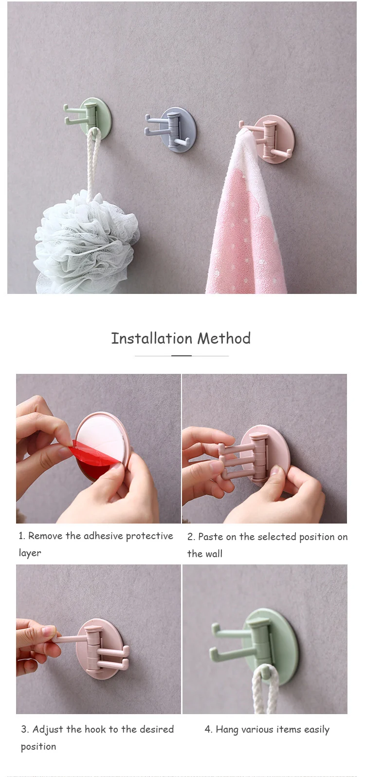 Самоклеящиеся настенные крючки, вращающийся дверной крючок, держатель для ключей, стеллаж для ванной комнаты, бытовые многофункциональные крючки для хранения, держатели