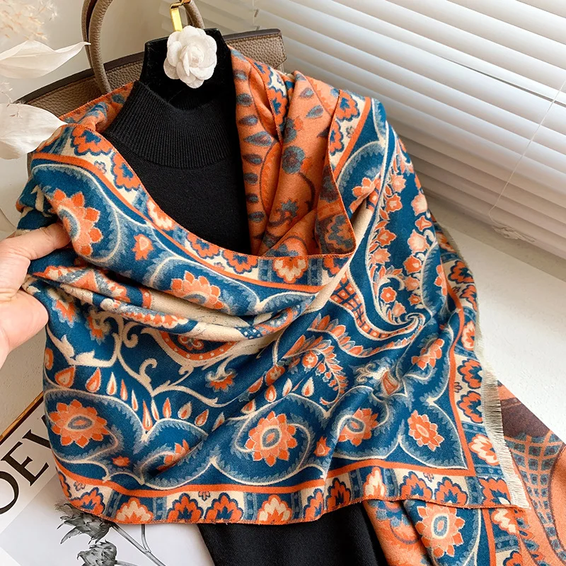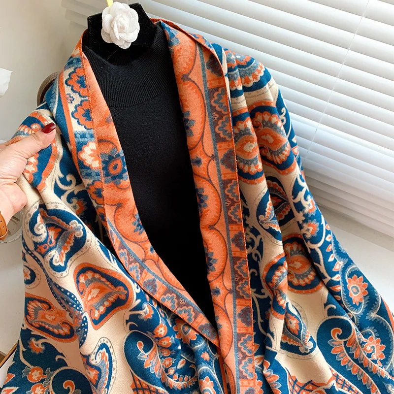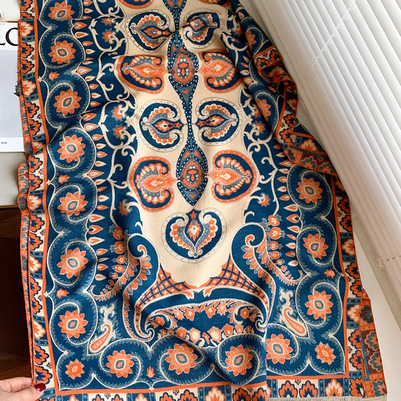 Винтажный кашемировый шарф, женские длинные шали и палантины, шейный платок, хиджаб, зимнее одеяло Bufanda, Элегантный принт из пашмины