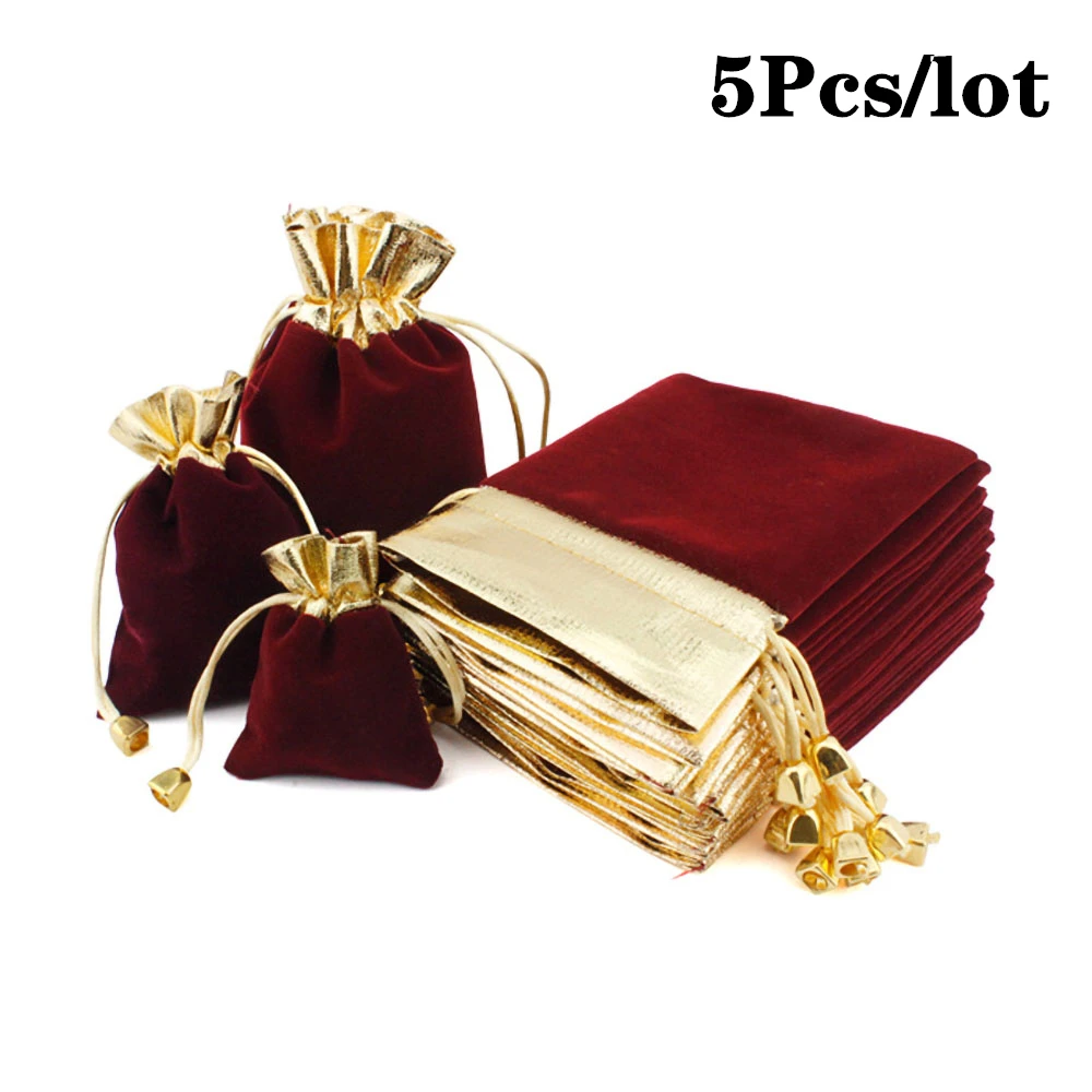 Винтажные бархатные пакеты, 5 шт.лот, 7x9 9x12 12x16 см, винно-крас...