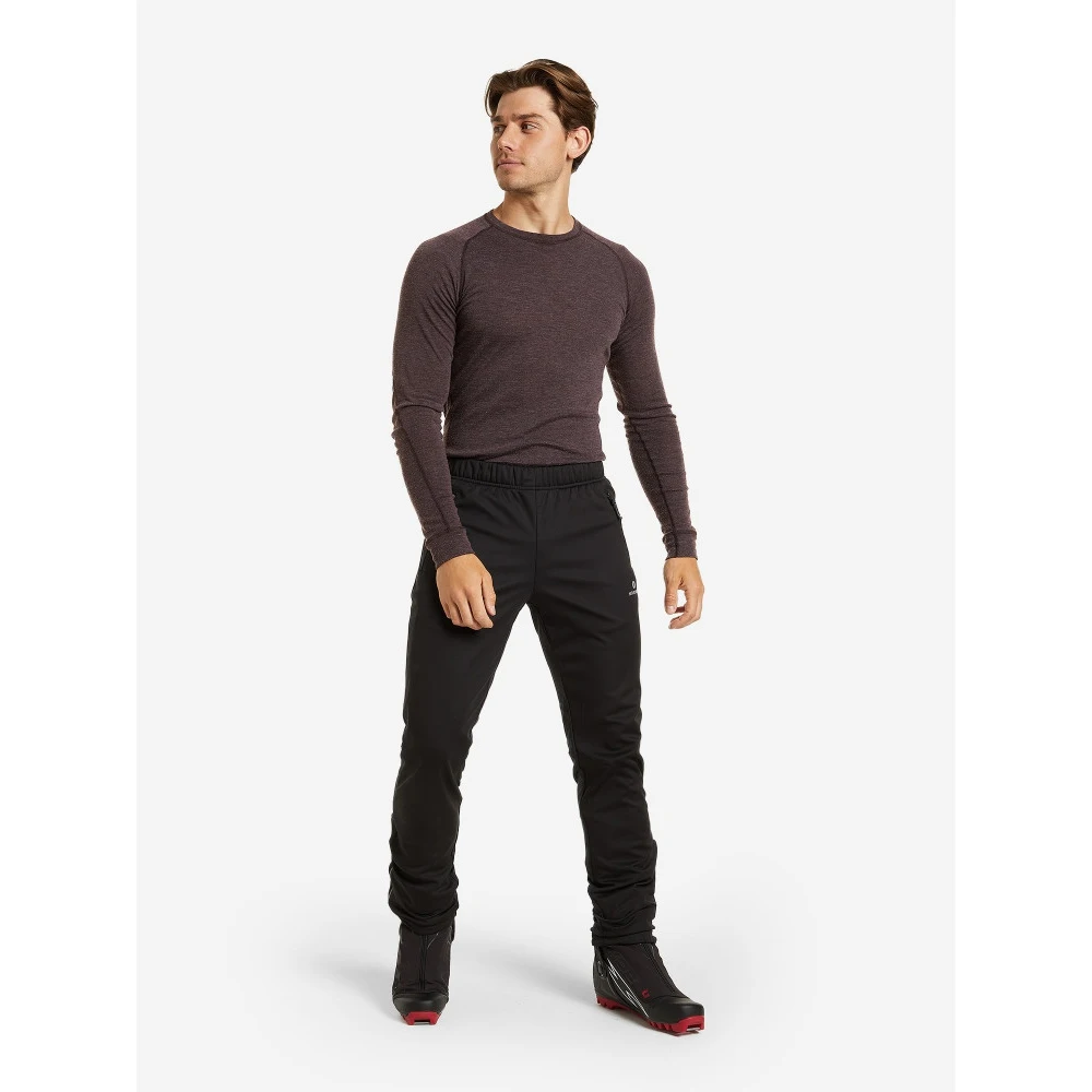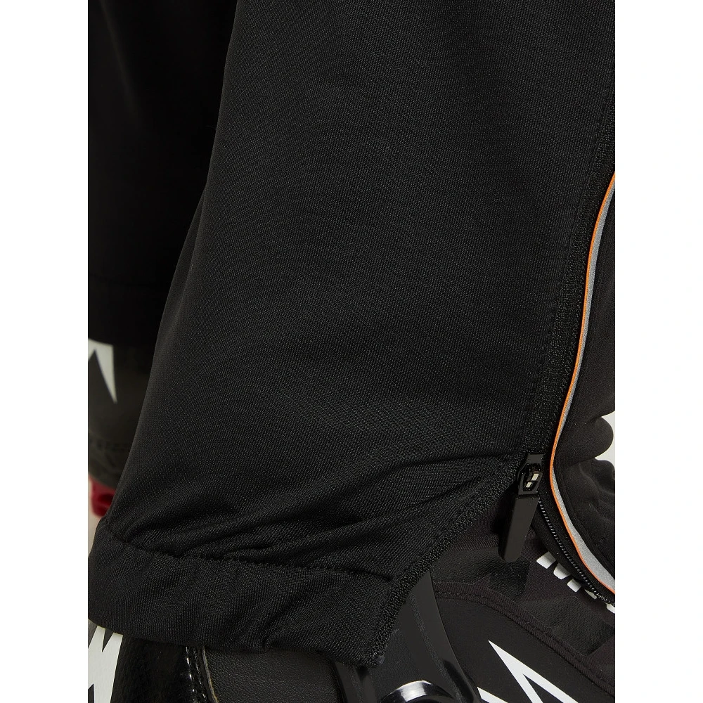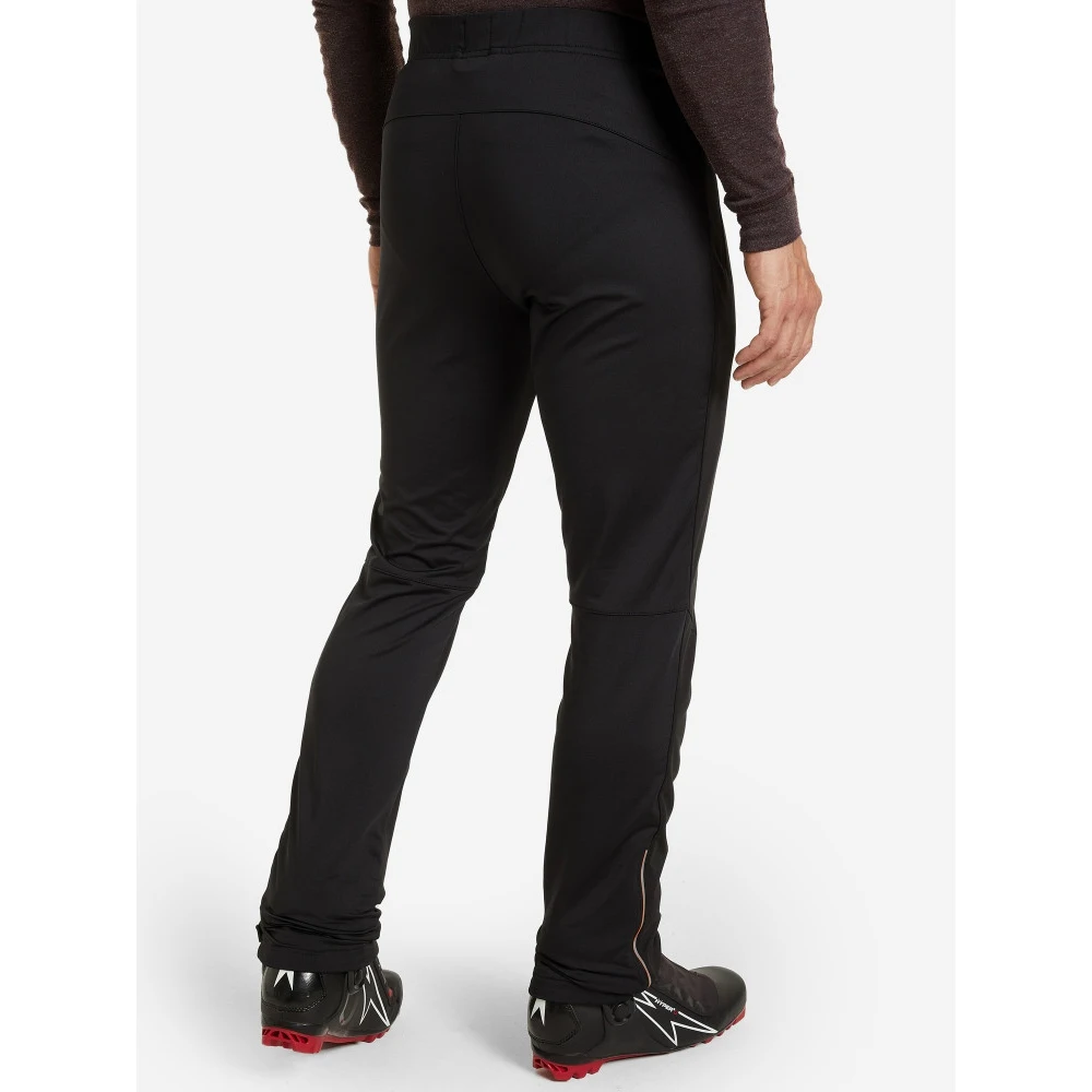 Лыжные брюки софтшелл. Мембрана с показателями водонепроницаемости и паропроницаемости 3000 мм и 8000 г/м2/24 ч для защиты от промокания и поддержания комфортного микроклимата. Детали: артикулируемые колени, регулируемый пояс, 2 кармана на молнии, светоотражающие элементы.