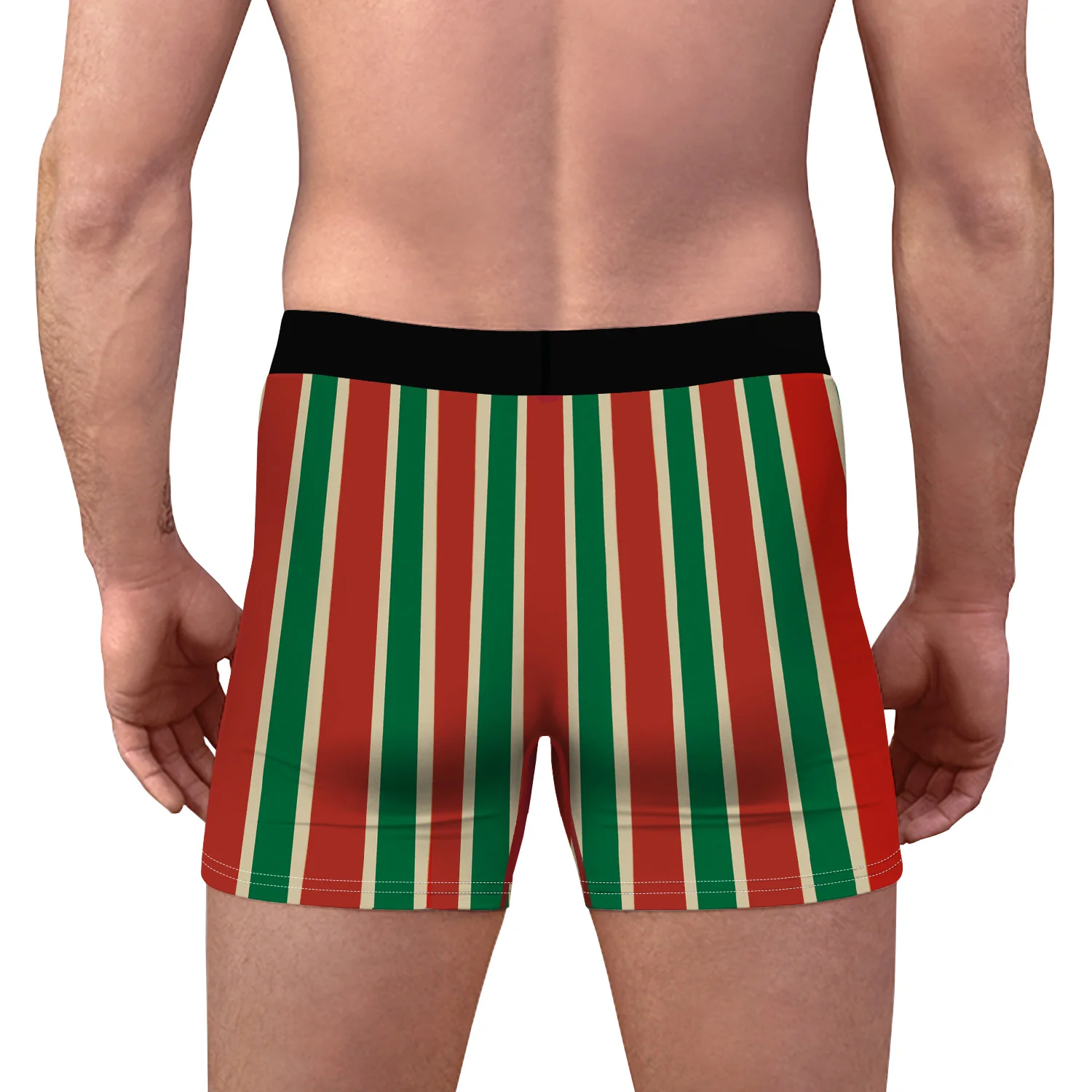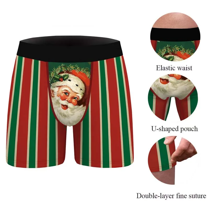 Мужские боксеры, шорты, рождественское нижнее белье в полоску с забавным принтом Санта, хорошее качество, эластичные мягкие Рождественские трусы, мужские брюки большого размера
