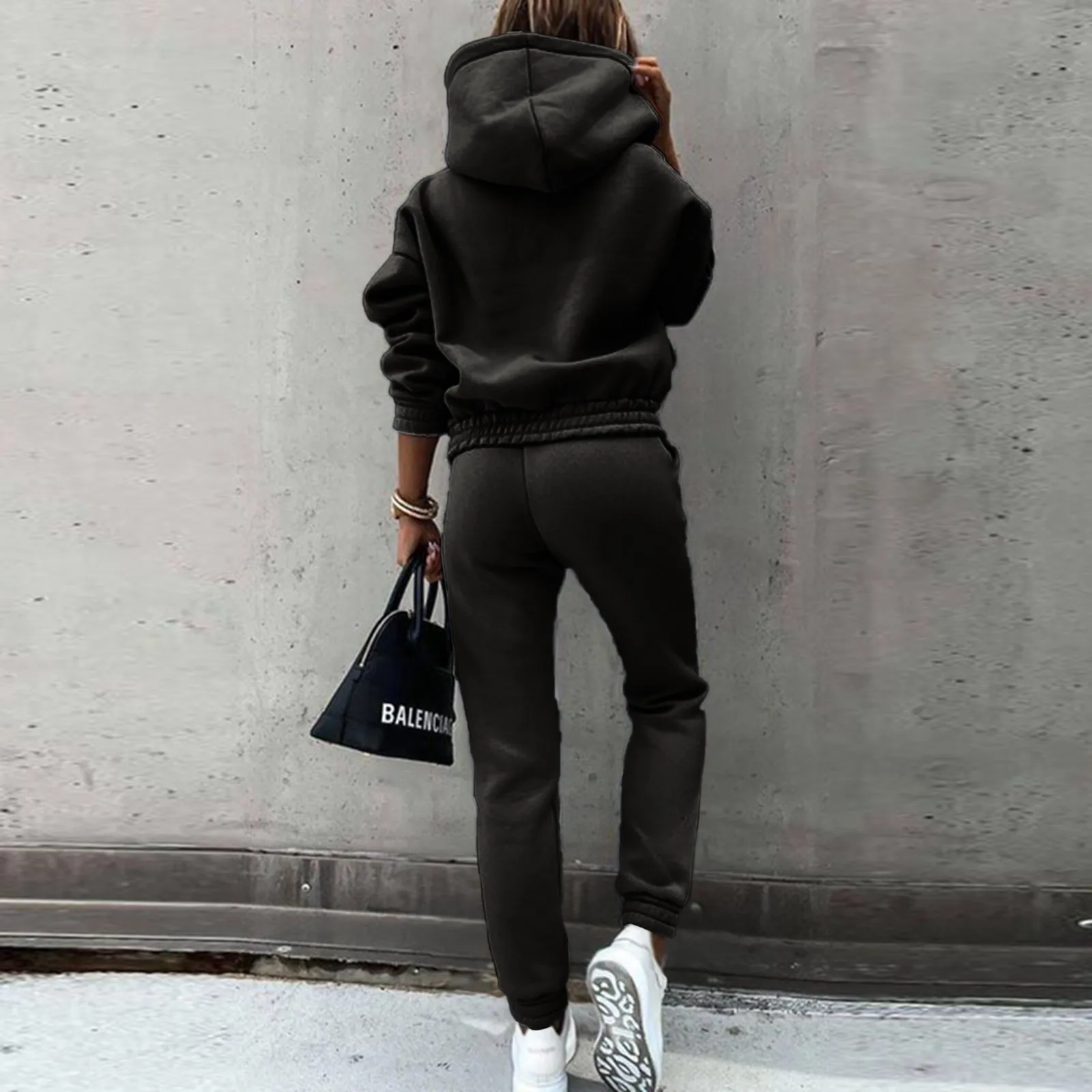 Office Lady Boho Dot PatternWomen Solid Color Pocket Hoodie Pants Outfit
