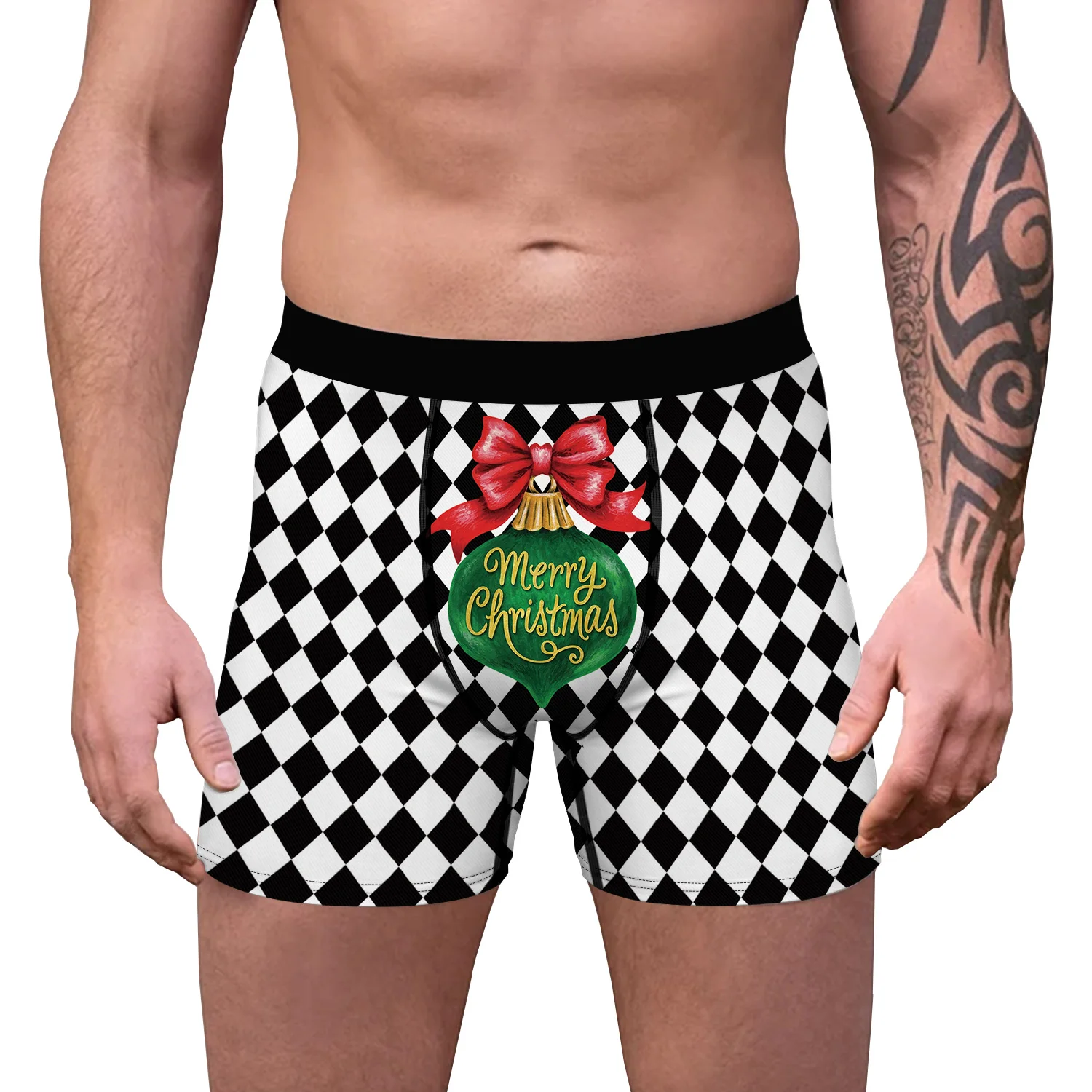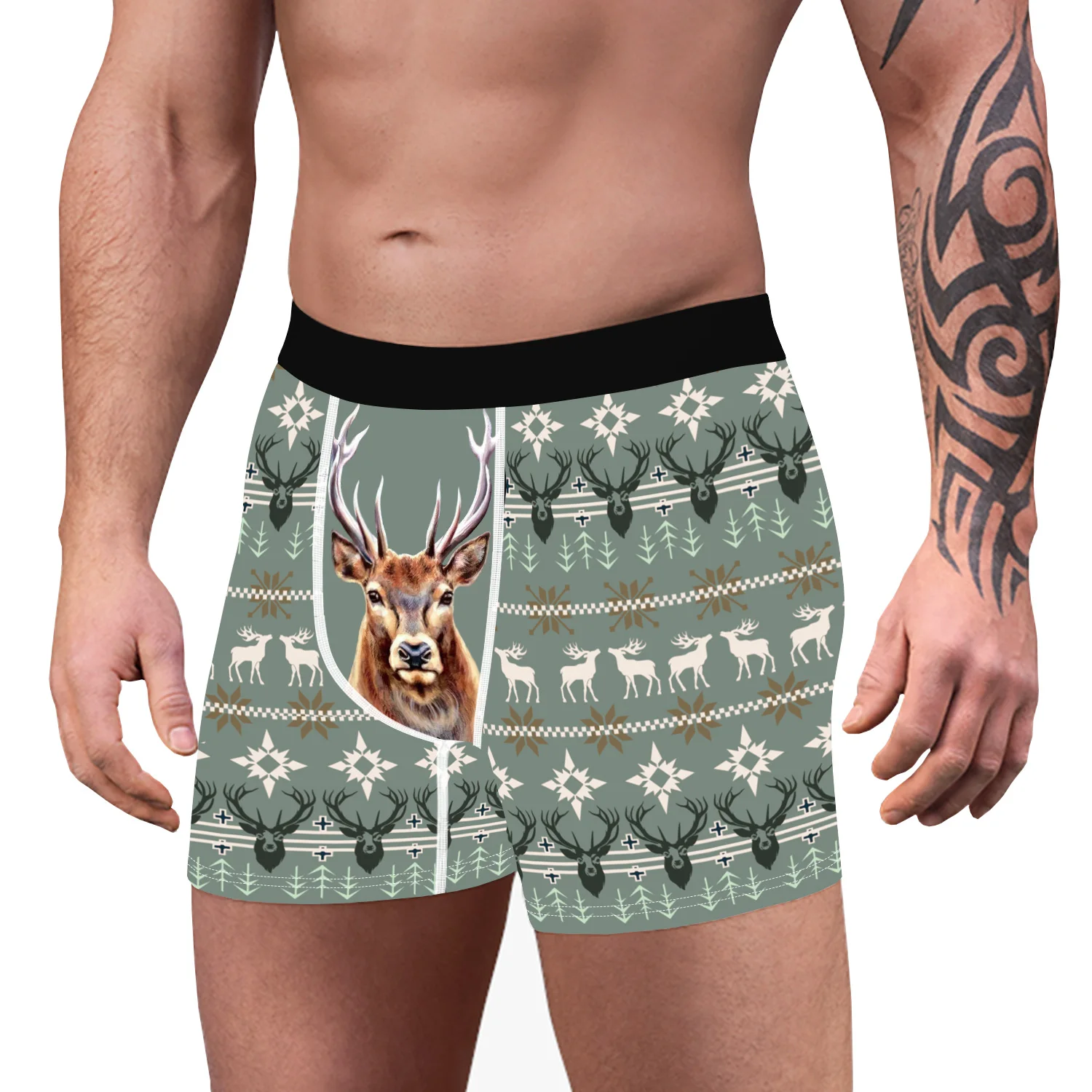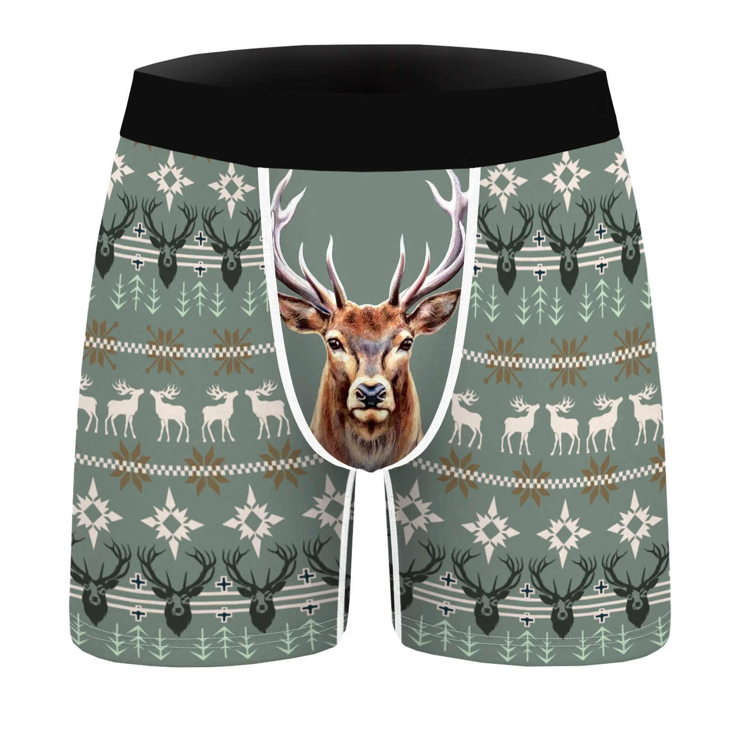 Зеленые рождественские мужские боксеры, зимние сексуальные мужские трусы с забавным 3D принтом, высококачественные дышащие эластичные трусы, шорты большого размера