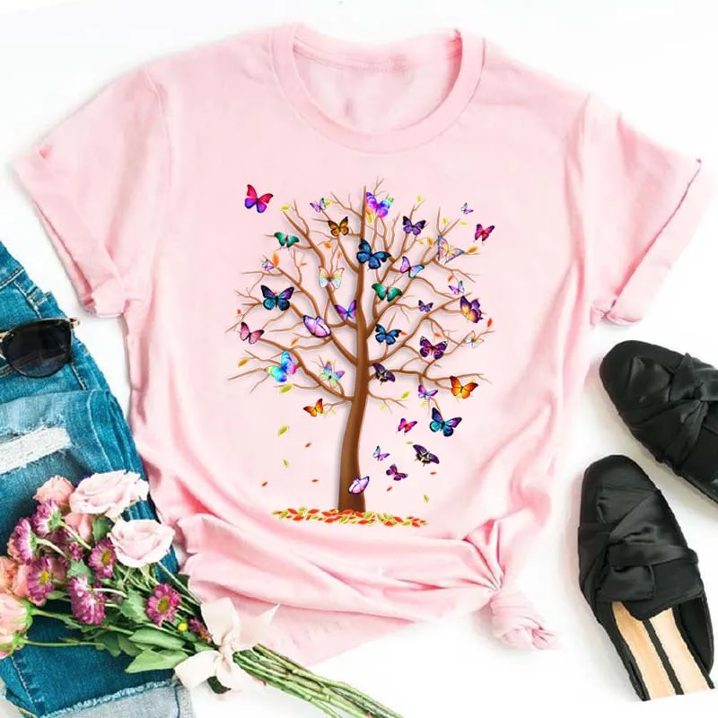 Летняя женская футболка с принтом в виде бабочки велосипед с принто...