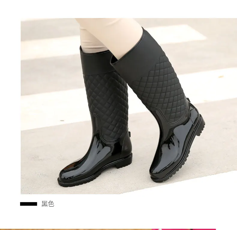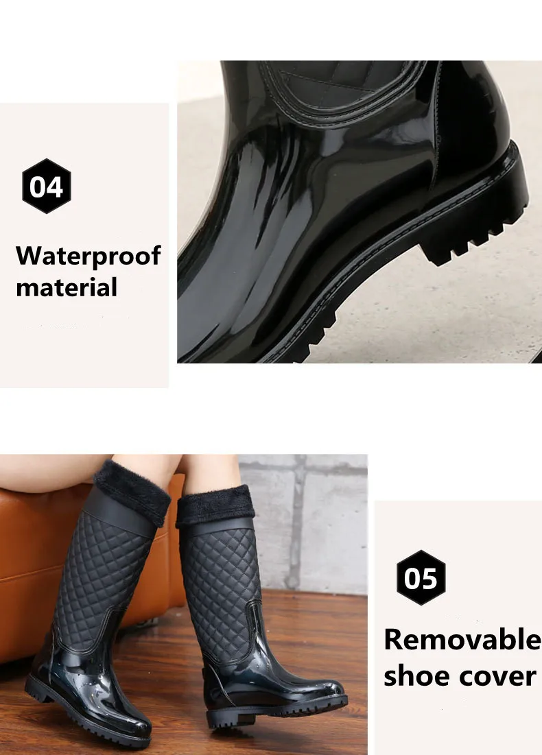 Новые женские резиновые сапоги, модные водонепроницаемые женские плюшевые теплые сапоги до колена из ПВХ и резины, Нескользящие модные повседневные сапоги