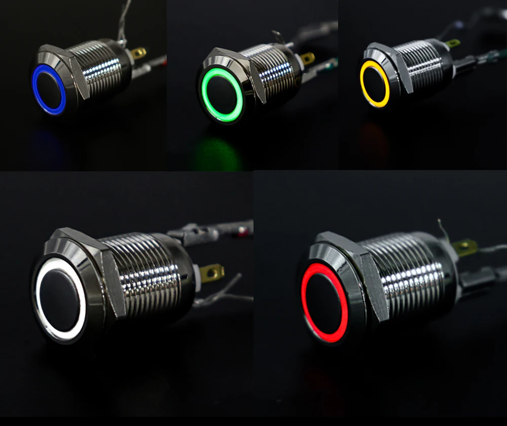 1 шт. 12 мм со светодиодом 3 в 5 в 12 В 24 В 220 В, металлическая кнопка переключения, мгновенная кнопка автоматического сброса, водонепроницаемая, с подсветкой, красный, синий, зеленый