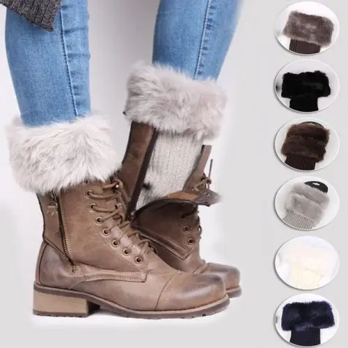 Новинка 2021, лидер продаж, модные женские вязаные крючком манжеты для сапог из искусственного меха, верхние носки до щиколотки, Зимние гетры для ног