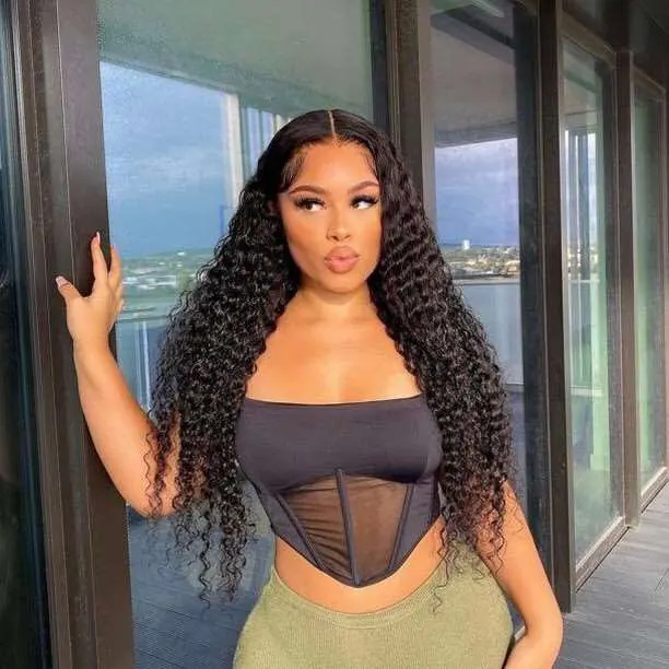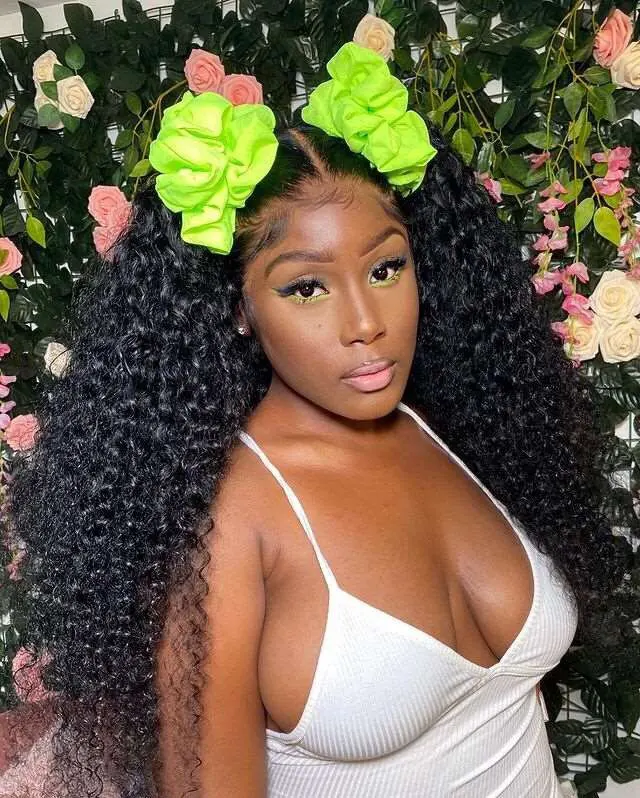 26 дюймов 180% плотность натуральный черный мягкий Кудрявый Длинный бесклеевой парик на сетке спереди высокая температура с детскими волосами для женщин