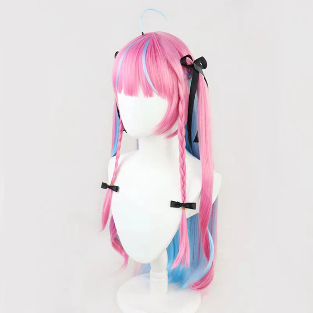VTuber Hololive Minato Aqua парик смешанные синие розовые прямые косы для девочек Косплей Длинные плетеные синтетические волосы ролевая игра