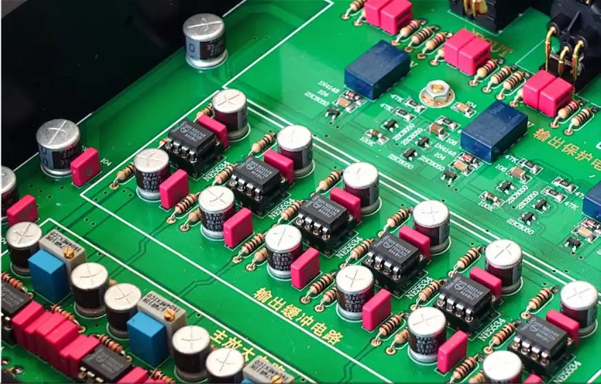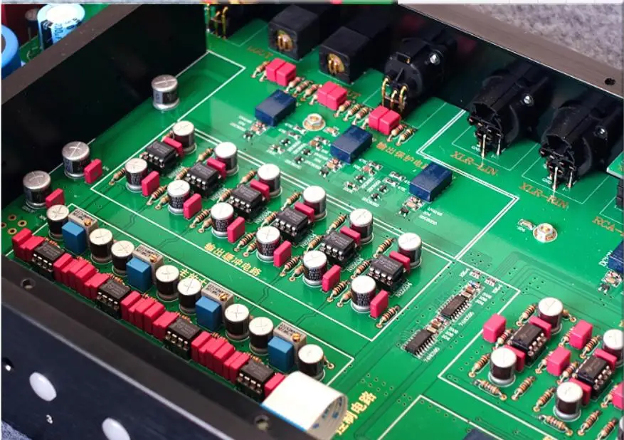 1. Преусилитель использует 14 шт. Phillip OP-AMPs, четыре из них NE5532 к входному буферу, четыре из них NE5534N к основному усилителю, шесть из них NE5534N к выходному буферу, усиление ультра-низкого искажения