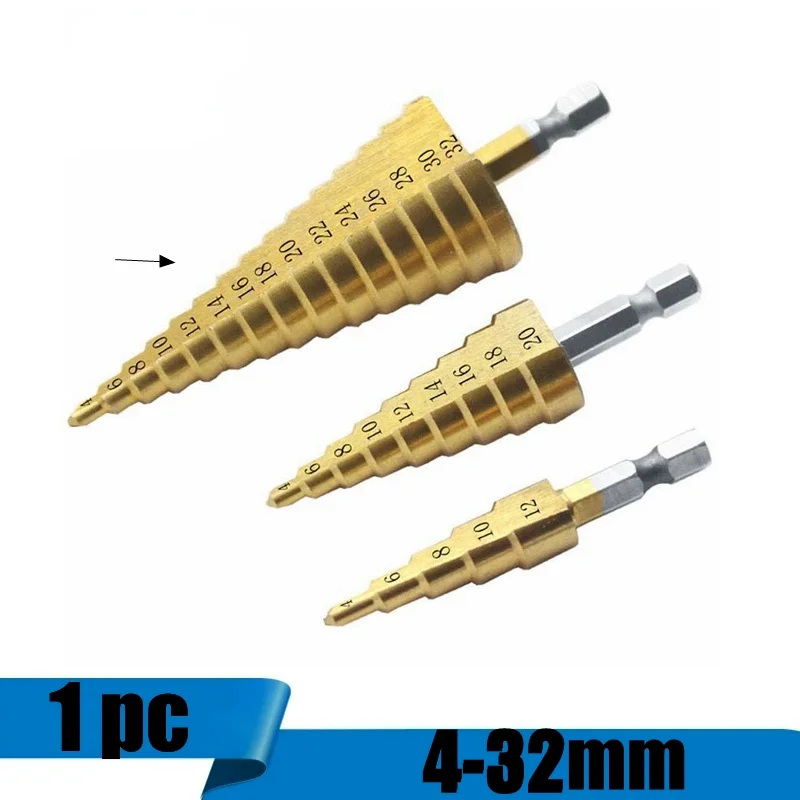 1 шт.3 шт. 4-32 мм ступенчатое сверло из быстрорежущей стали с титановым покрытием сверлильные электроинструменты металлические высокоскоростные стальные сверла для отверстий по дереву ступенчатое Коническое сверло