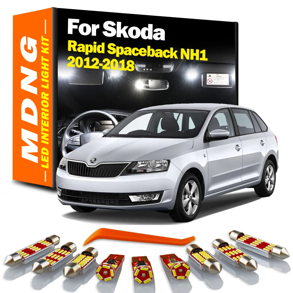 MDNG 12 шт. Canbus Светодиодная лампа для освещения салона автомобиля набор для Skoda Rapid Spaceback NH1 2012 2013 2014-2018 Купол Карта багажник номерной знак лампа