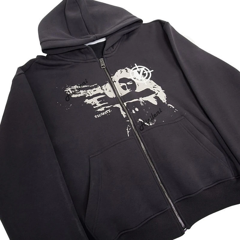 Черная толстовка с капюшоном на молнии и длинным рукавом, Y2k