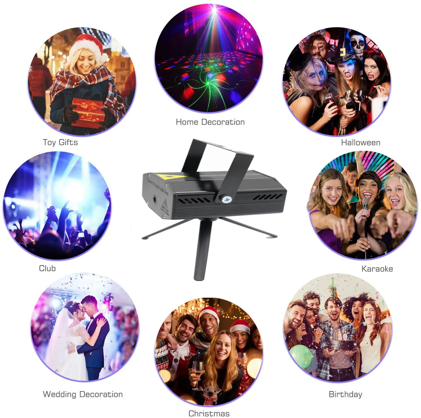 Рождественский мини-проектор с активированным звуком гипсофилой, лазерный эффект, автоматическая сценическая атмосфера для домашней вечеринки, освещение для диджея, дискотеки