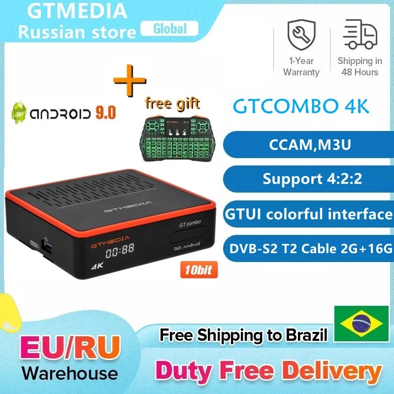 ТВ-приставка GTMEDIA GT COMBO Smart DVB Android 9,0спутниковый ТВ-ресивер T2 ,S2X, карта CAH.265 10 битТВ-приставка