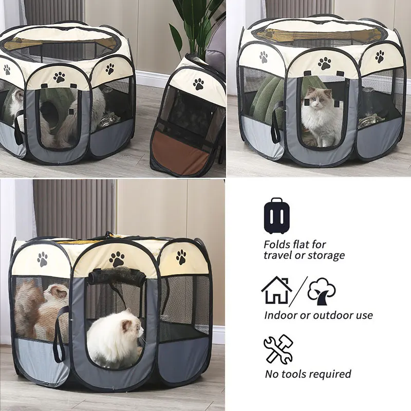 Переносная складная палатка для домашних питомцев, домик для собак, восьмиугольная клетка для кошек, манеж, вольер для щенков, простое в использовании ограждение, уличный домик для больших собак