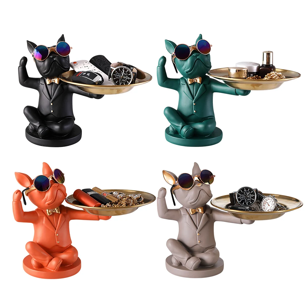 Статуэтка в скандинавском стиле для хранения бульдога, роскошная статуэтка, поднос для фруктов, закусок, конфет, поднос для входного стола, брелок для монет, скульптура, Декор для дома