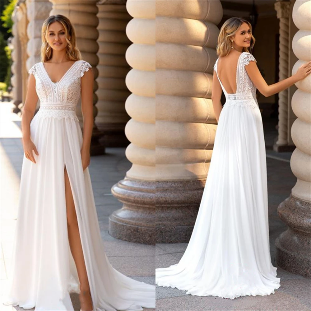 Женское шифоновое свадебное платье It's yiiya, белое кружевное платье с открытой спиной и V-образным вырезом на лето 2019