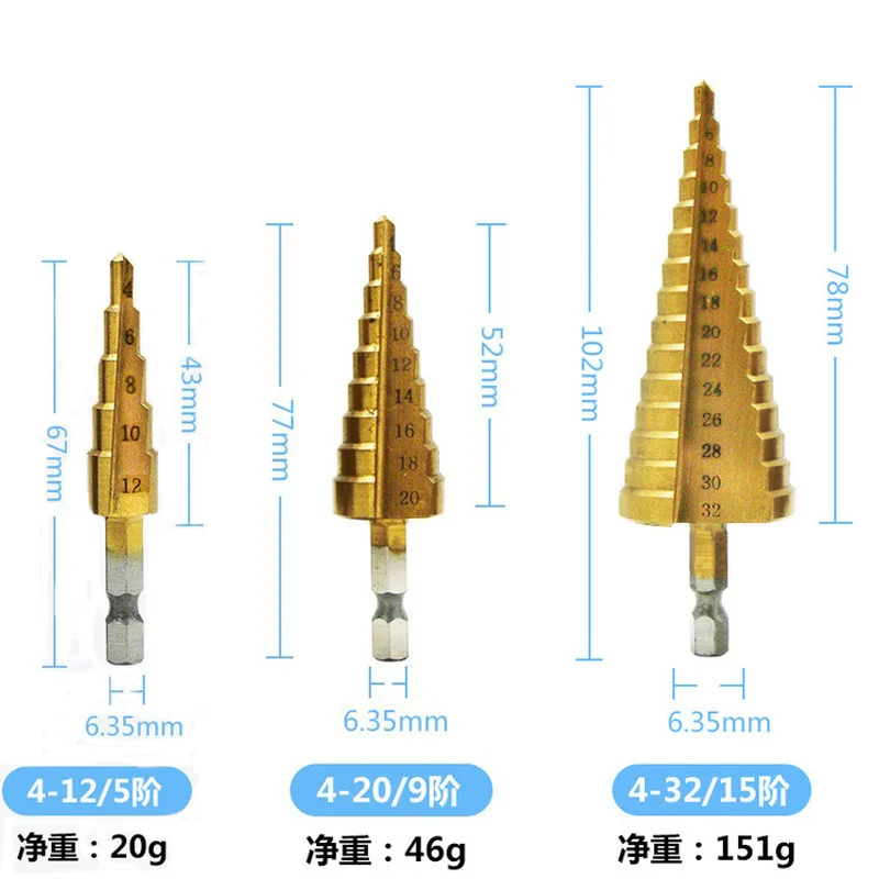1 шт.3 шт. 4-32 мм ступенчатое сверло из быстрорежущей стали с тита...