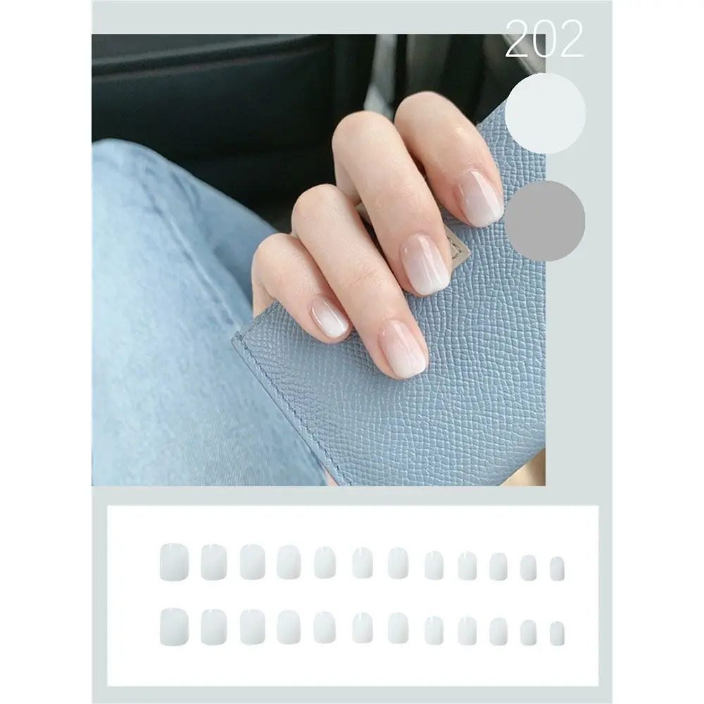 24 шт.корт. Искусственные ногти с клеем молочный черный белый гради...