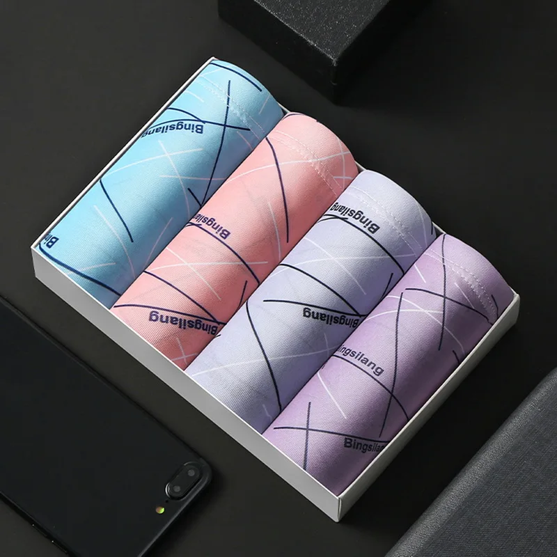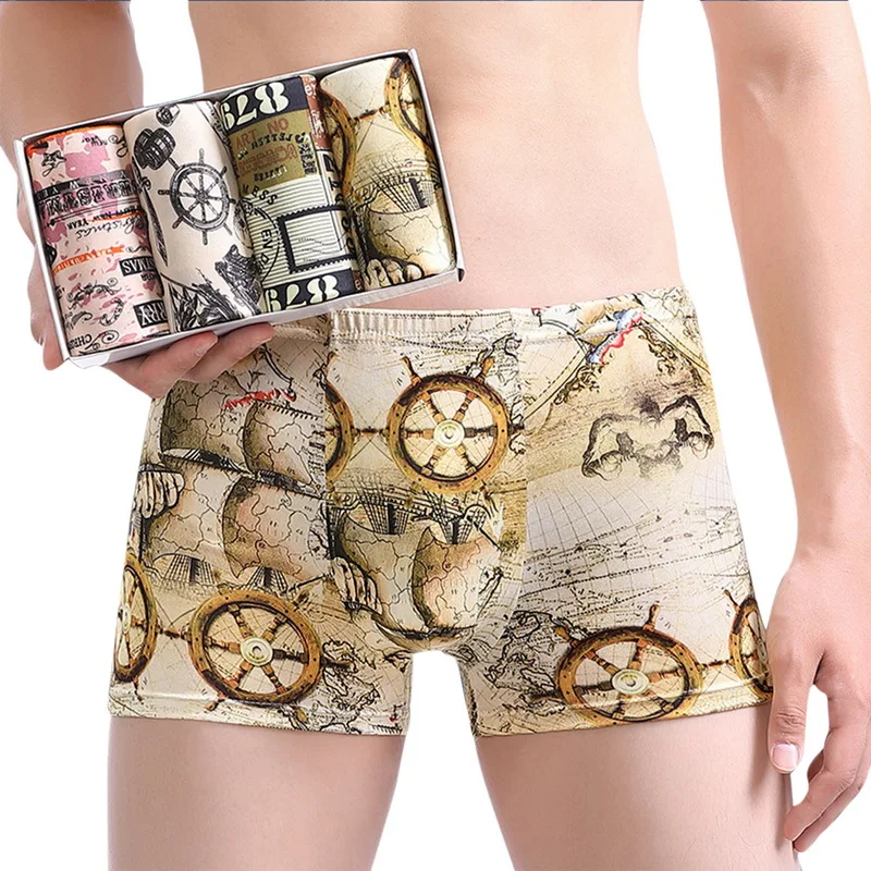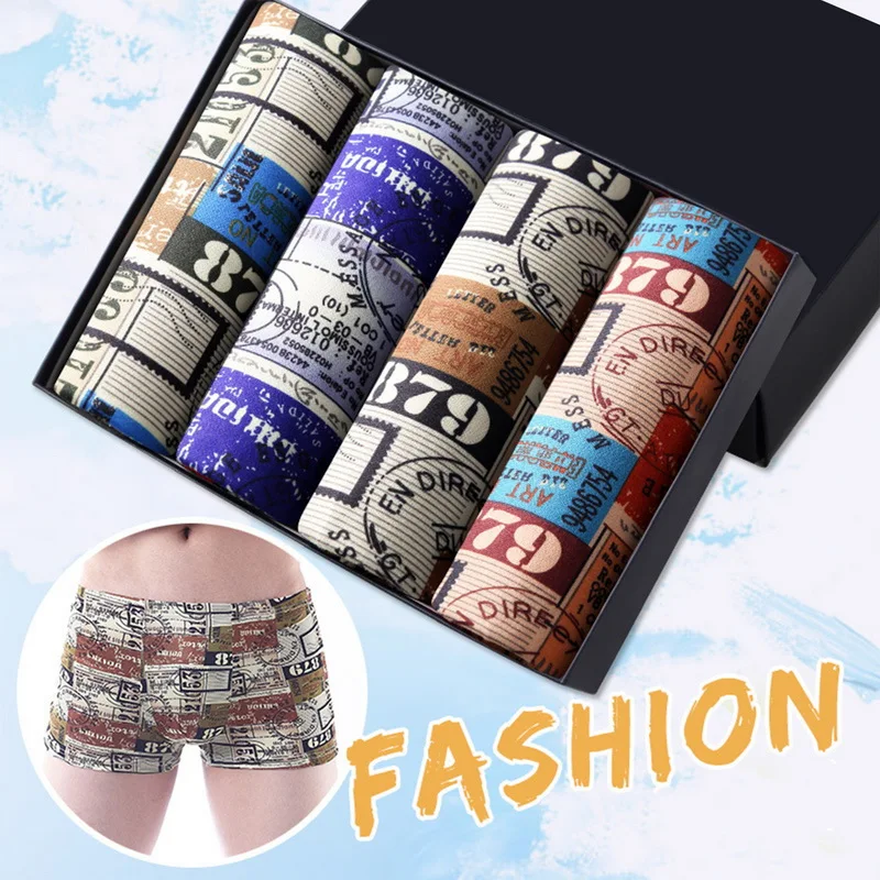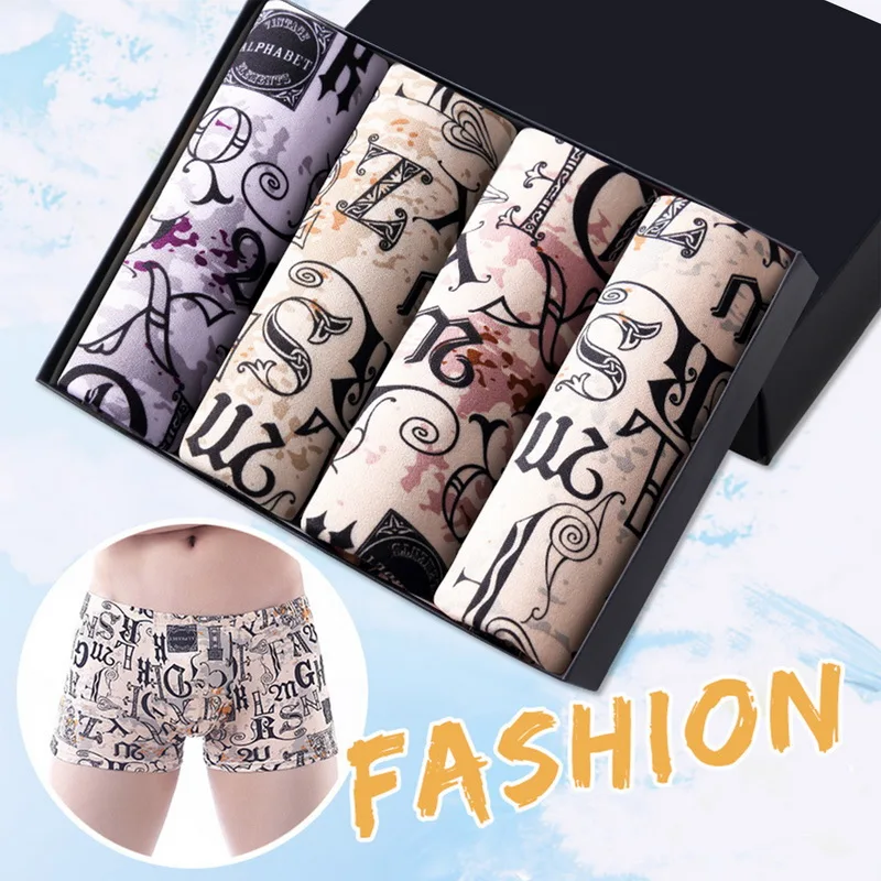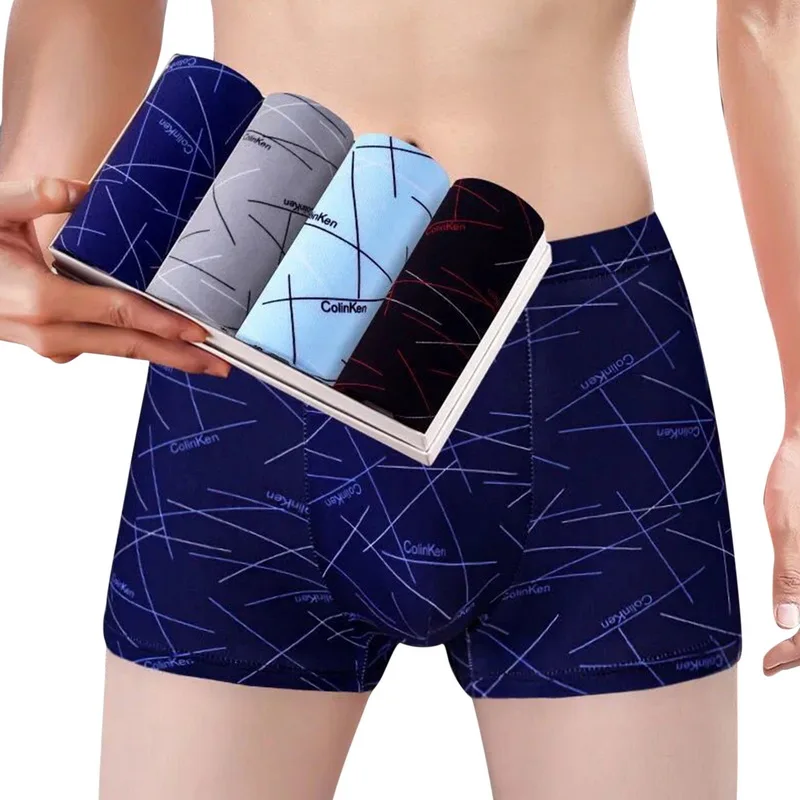 Хлопковые боксеры 4 шт.лот, нижнее белье для мужчин, Брендовые мужские трусы, мужские трусы, дышащие шорты с U-образным выпуклым мешочком, мужские боксеры с принтом
