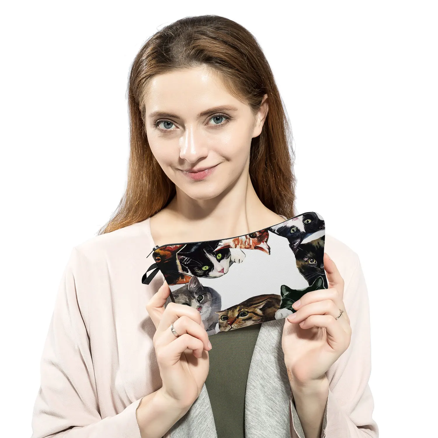 Симпатичная Акварельная дизайнерская сумка для макияжа с рисунком кошки, дамская сумочка для путешествий, женская косметичка, Женский пенал