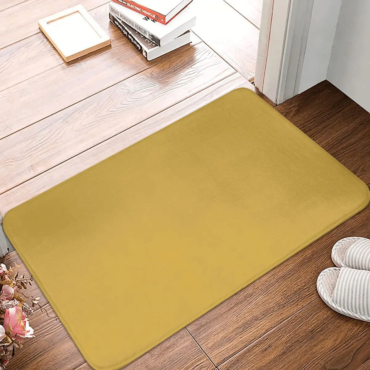 Простой однотонный острый горчичный Придверный коврик для ног из полиэстера Противоскользящий коврик для коридора кухни спальни балкона туалета