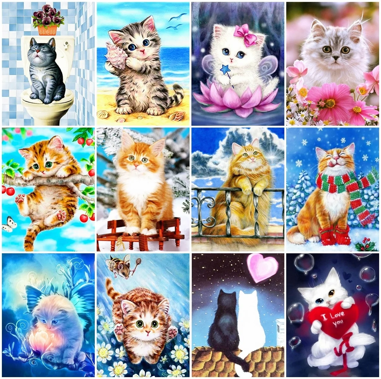 Набор для вышивки крестиком AZQSD, алмазная живопись 5D с кошкой, цветком, мозаика с животными, домашний декор