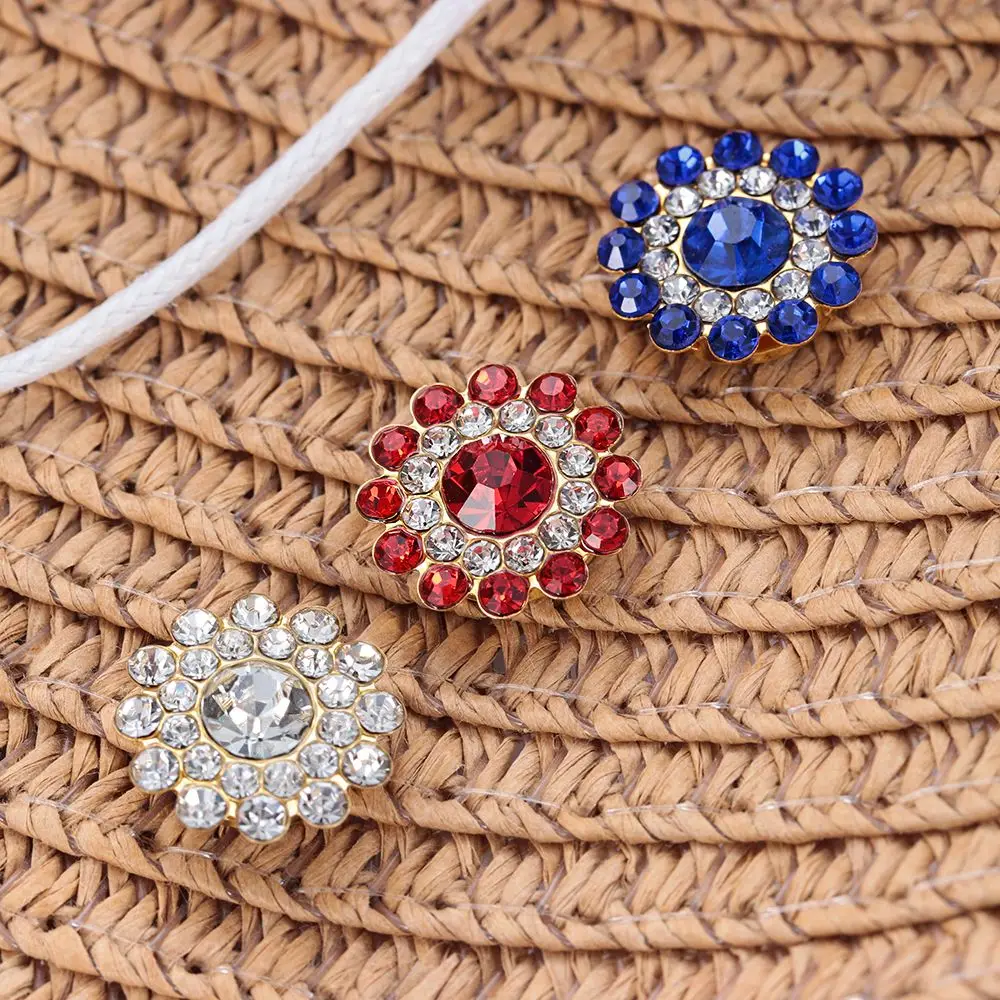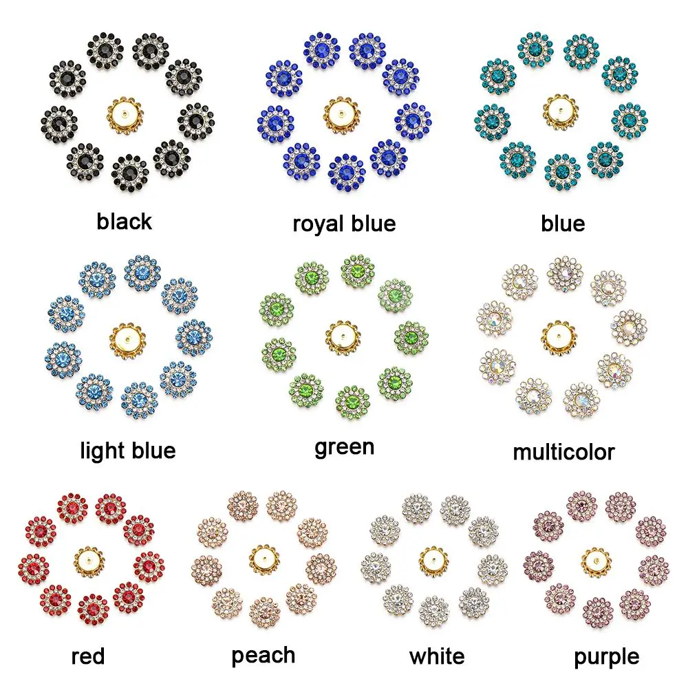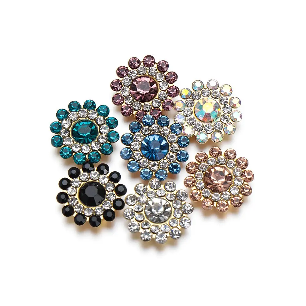 Пуговицы Стразы в форме цветка, 10 шт., 14 мм, сверкающий кристалл, стеклянный камень, стальное дно, украшение одежды, Швейные аксессуары