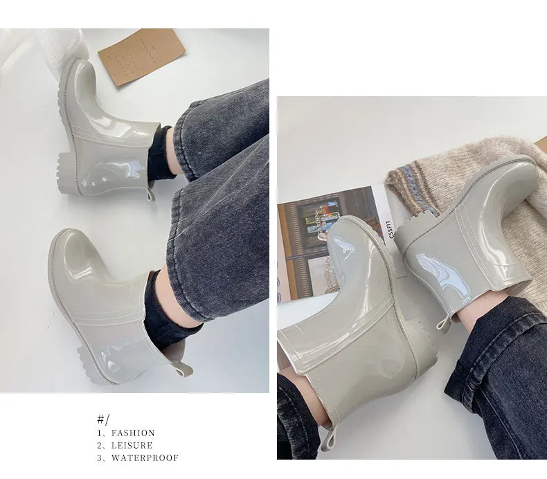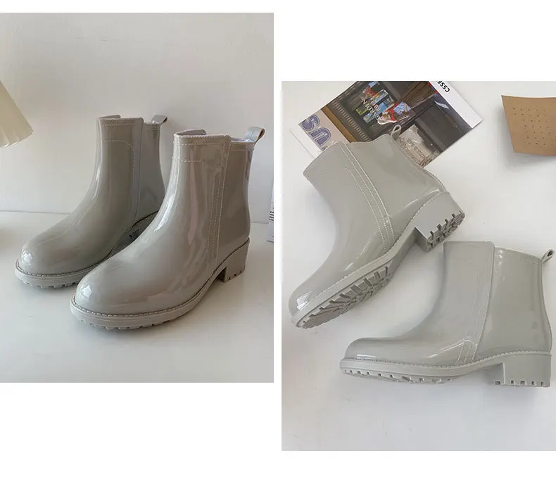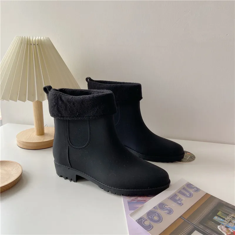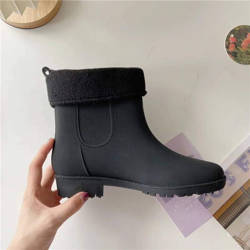 Модные непромокаемые сапоги до щиколотки; Женские резиновые непромокаемые сапоги; Сезон весна-осень; Женская Нескользящая теплая обувь из плюша