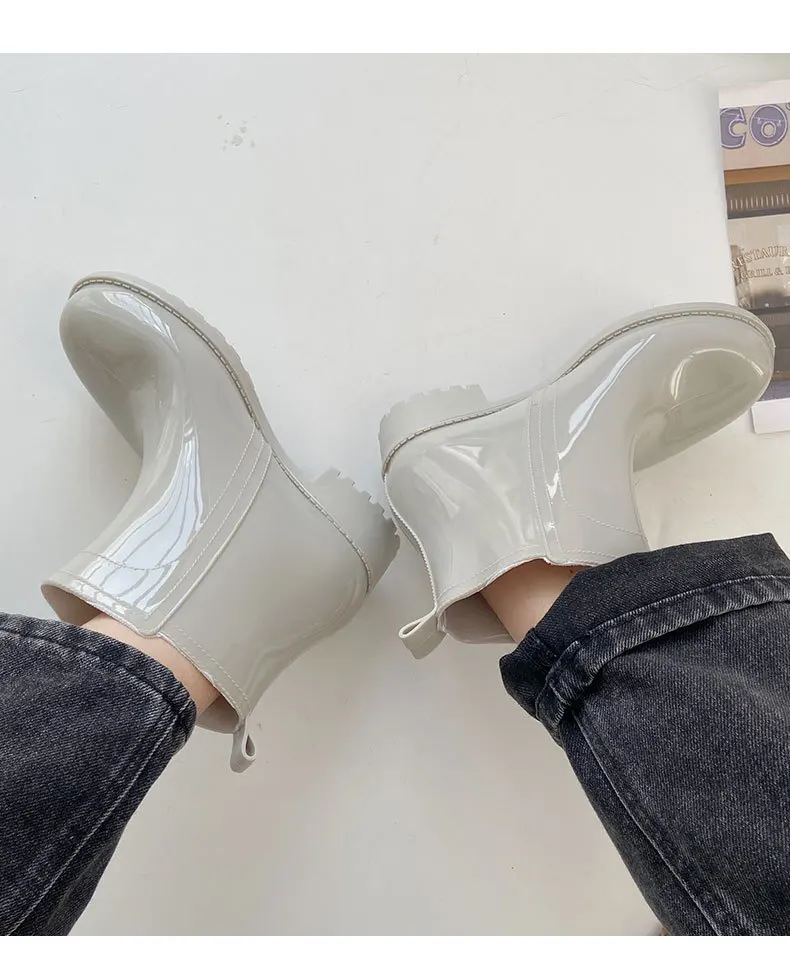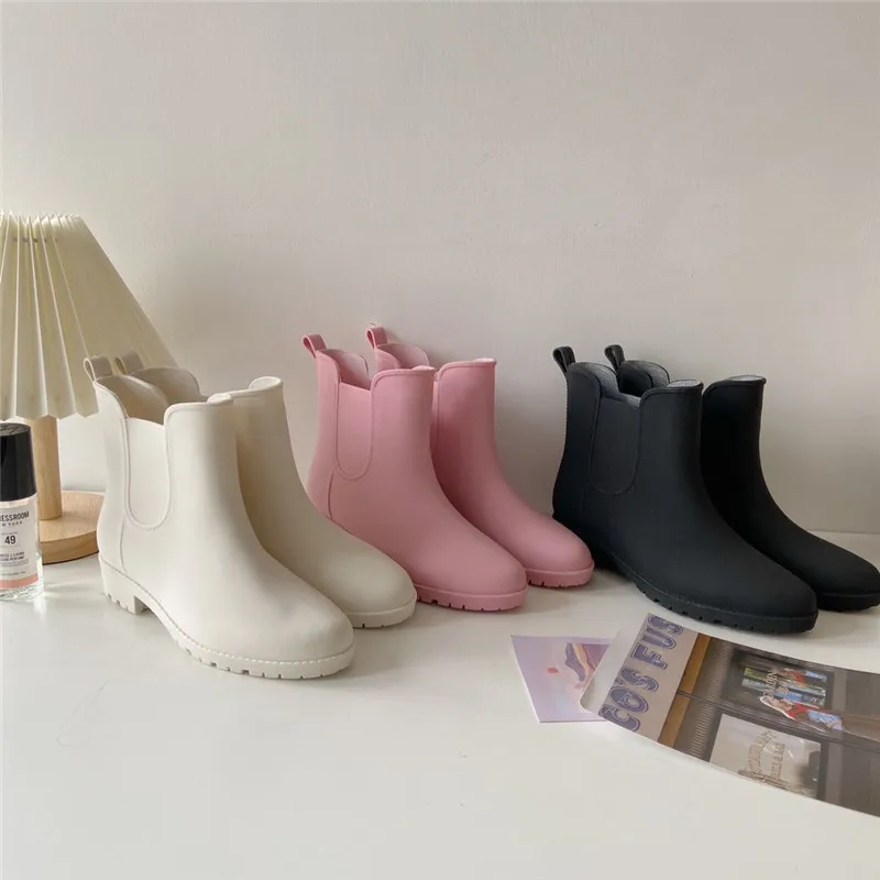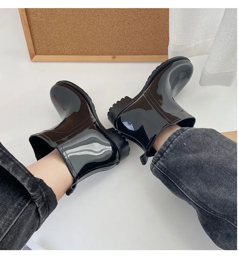 Женские резиновые водонепроницаемые ботинки до щиколотки, Нескользящие плюшевые теплые ботинки для весны и осени