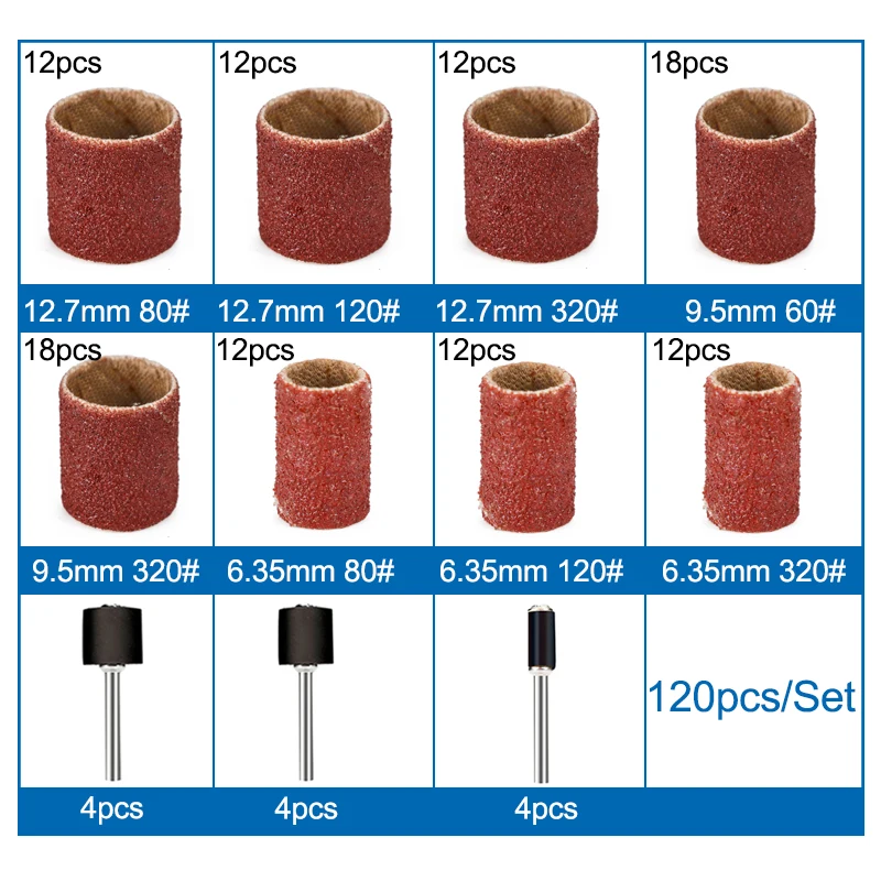 Набор шлифовальных лент XCAN, 120 шт., зернистость 80, шлифовальные насадки с оправкой 14, 38, 12, шлифовальный барабан, абразивный Полировальный Инструмент