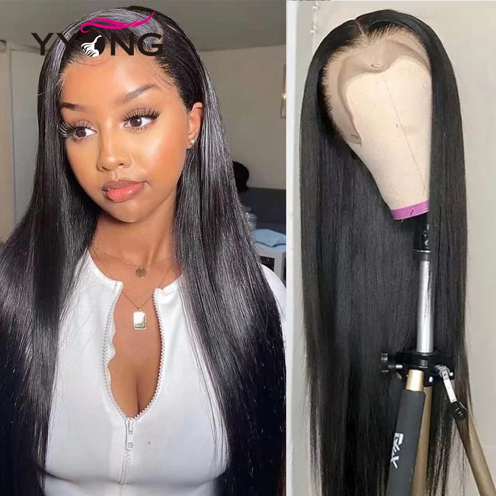 YYong 180% 13x4 13X6 прозрачный кружевной передний парик из человеческих волос предварительно выщипанный 4x4 парик на сетке 32 30 дюймов прямой кружевной передний парик
