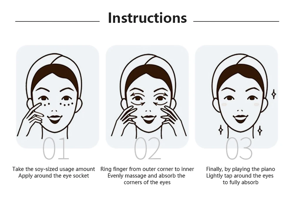 Текстура освежает, увлажняет и деликатна, улучшает сухость и обезвоживание кожи, устраняет проблемы с кожей глаз, устраняет отечность, уменьшает темные круги, удаляет мешки для глаз и устраняет область вокруг глаз.